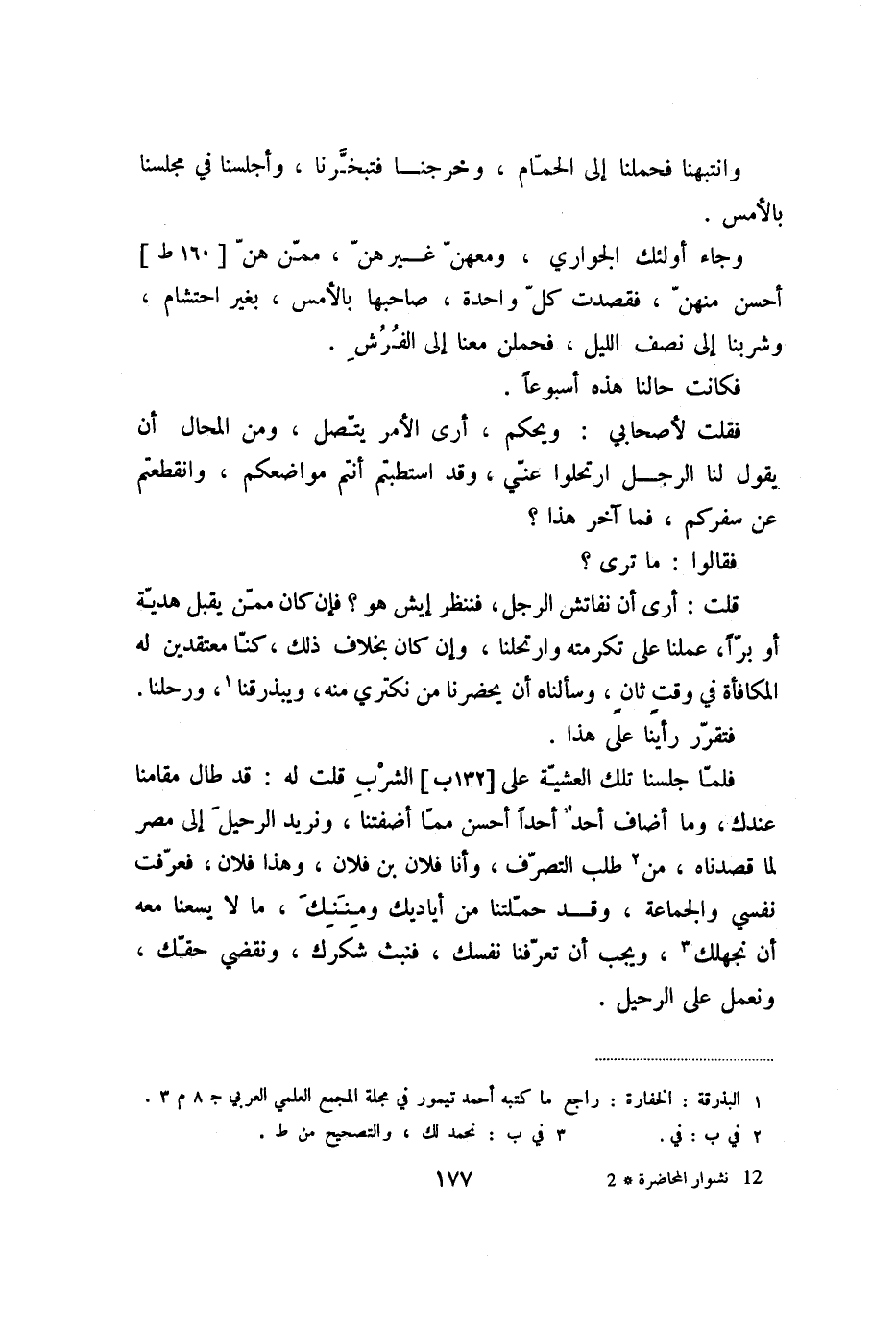 فقلت لأصحابي: ويحكم، أرى الأمر يتّصل، ومن المحال أن يقول لنا الرجل ارتحلوا عنّي، وقد استطبتم أنتم مواضعكم، وانقطعتم عن سفركم، فما آخر هذا؟