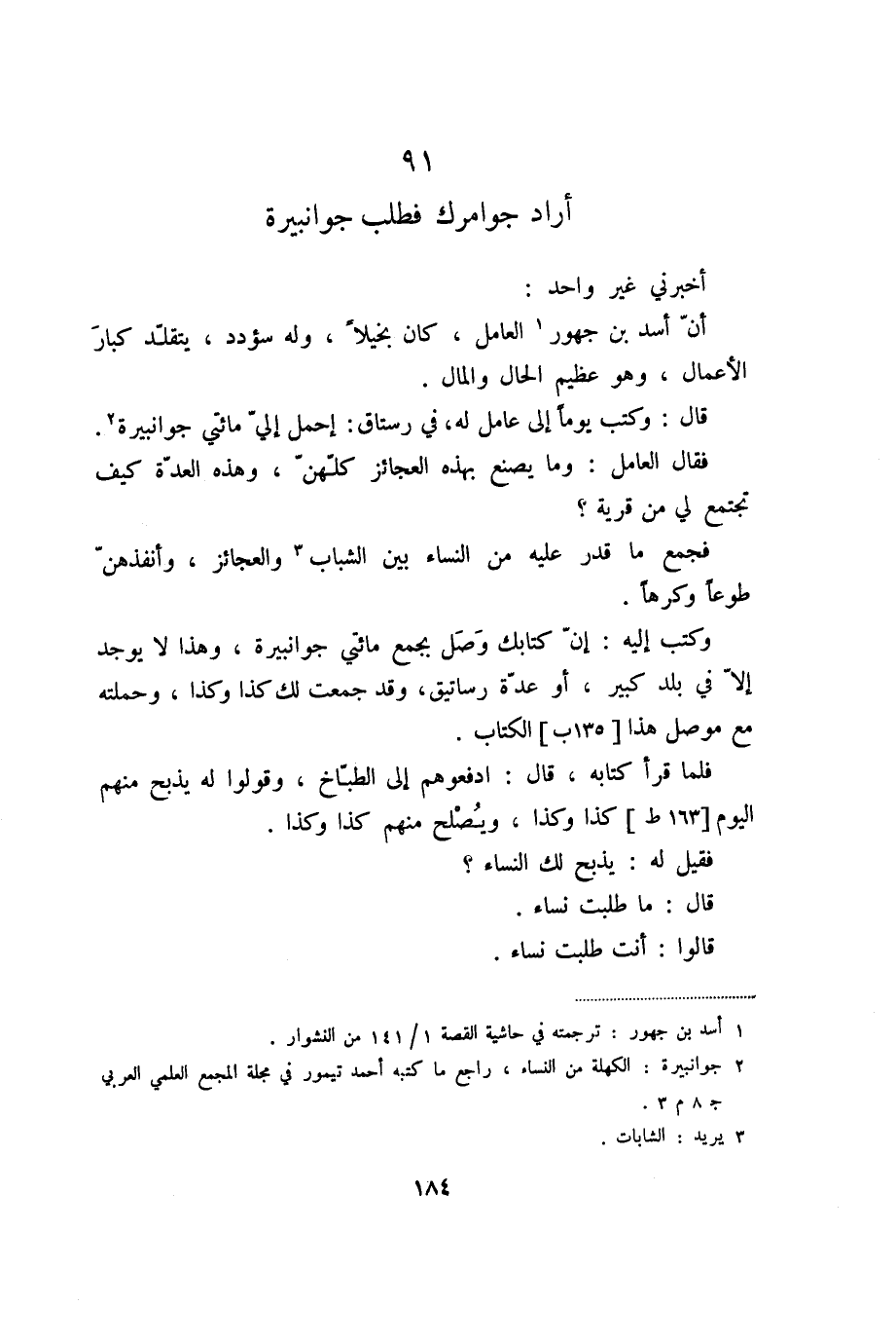 فقال العامل: وما يصنع بهذه العجائز كلّهنّ، وهذه العدّة كيف تجتمع لي من قرية؟