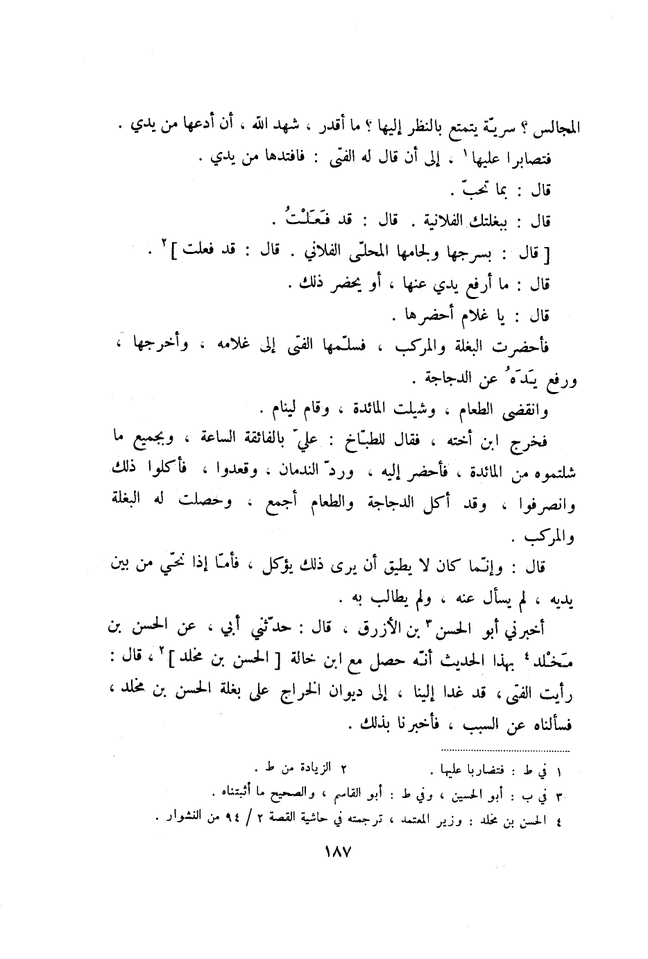 رأيت الفتى، قد غدا إلينا، إلى ديوان الخراج على بغلة الحسن بن مخلد، فسألناه عن السبب، فأخبرنا بذلك.