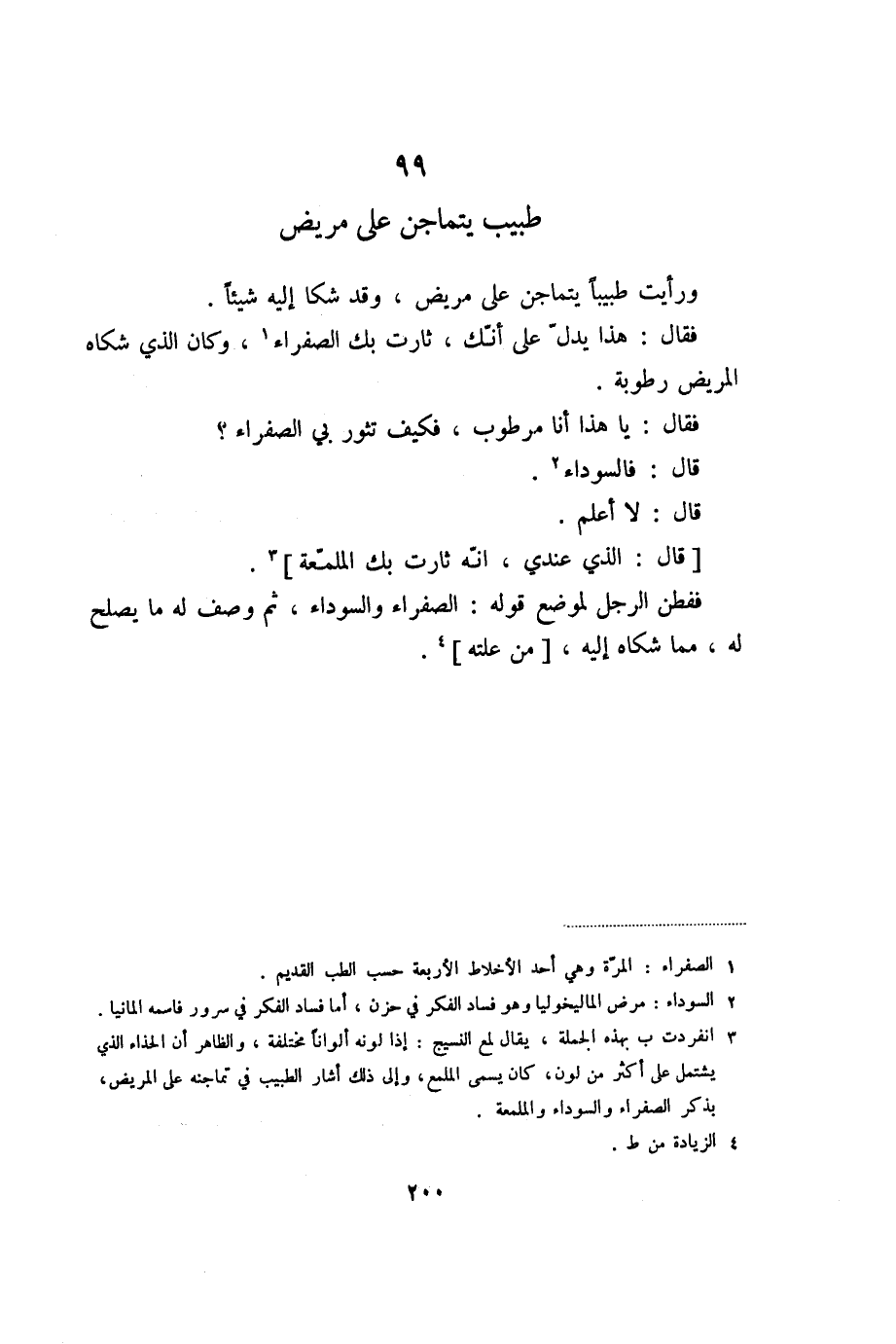 ورأيت طبيبا يتماجن على مريض، وقد شكا إليه شيئا.
