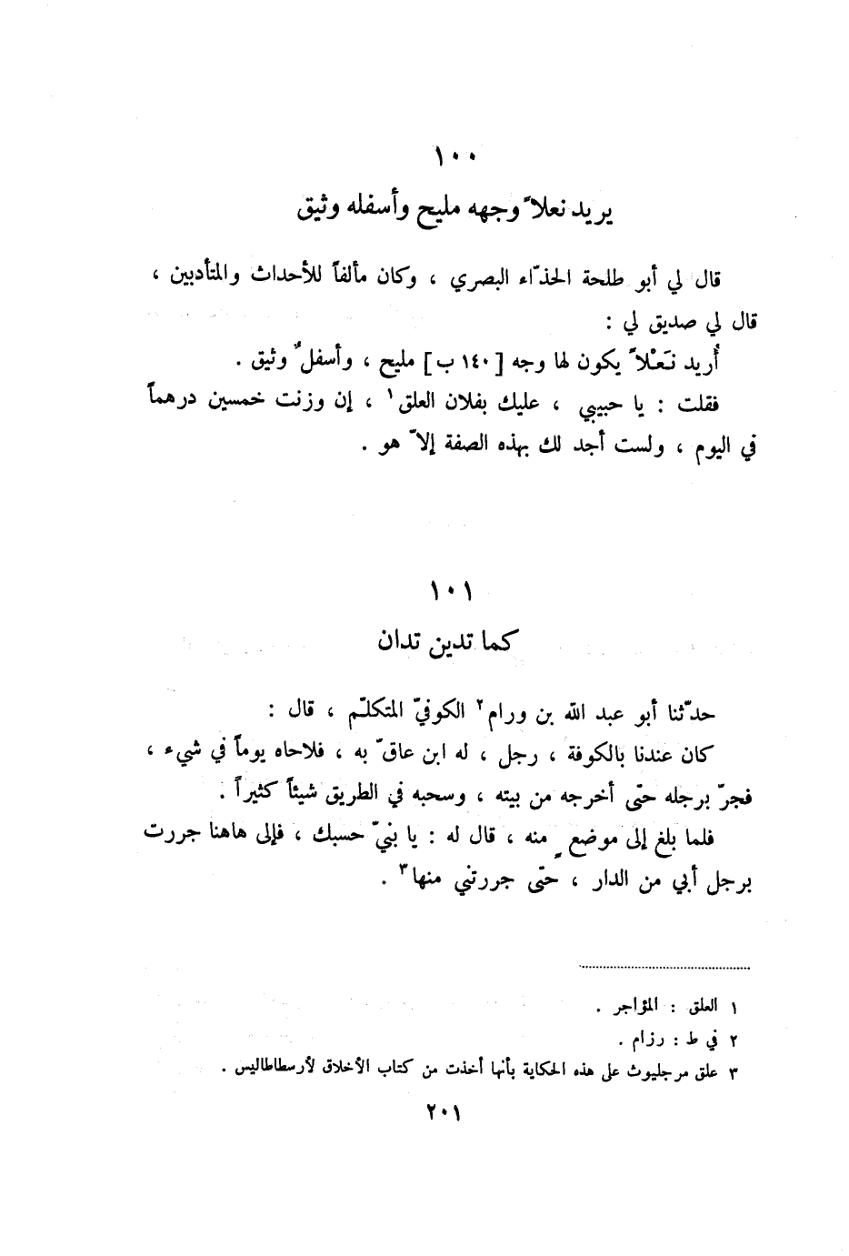 قال لي أبو طلحة الحذّاء البصري، وكان مألفا للأحداث والمتأدبين، قال لي صديق لي: