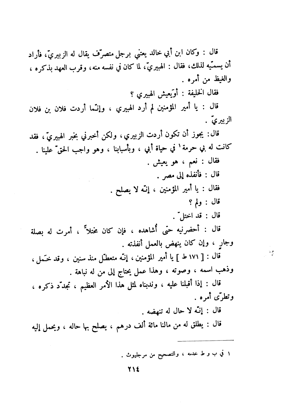 قال: يا أمير المؤمنين لم أرد الهبيري، وإنّما أردت فلان بن فلان الزبيريّ.