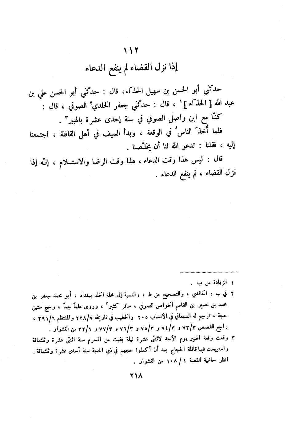 حدّثني أبو الحسن بن سهيل الحذّاء، قال: حدّثني أبو الحسن علي بن عبد الله [الحذّاء] «1» ، قال: حدّثني جعفر الخلدي «2» الصوفي، قال: