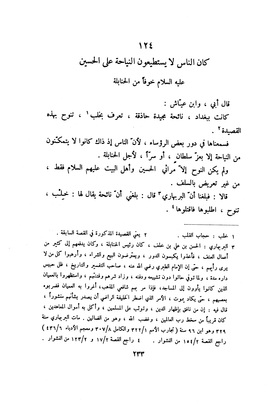 124 كان الناس لا يستطيعون النياحة على الحسين عليه السلام خوفا من الحنابلة