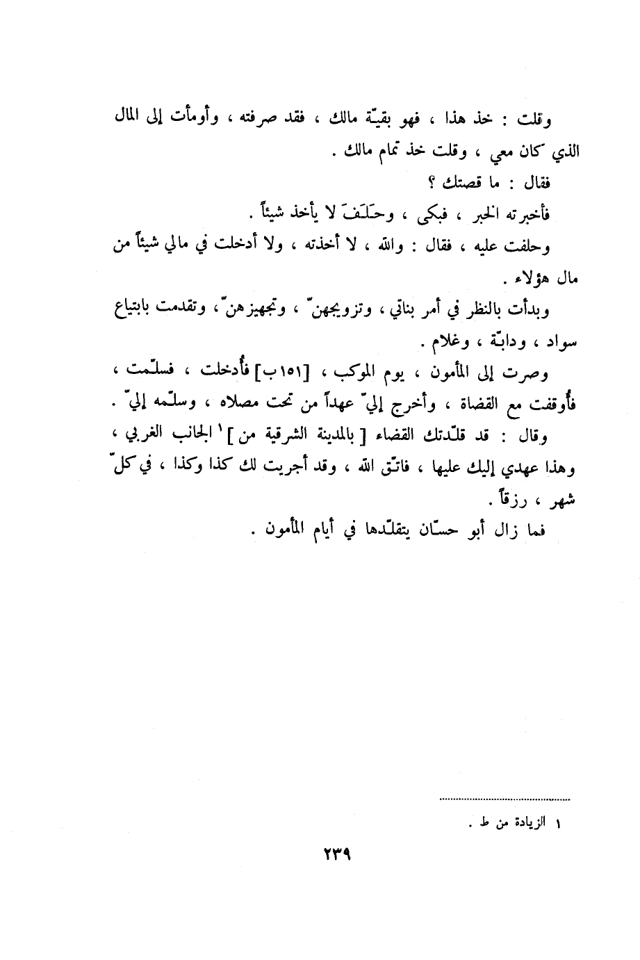 وقلت: خذ هذا، فهو بقيّة مالك، فقد صرفته، وأومأت إلى المال الذي كان معي، وقلت خذ تمام مالك.
