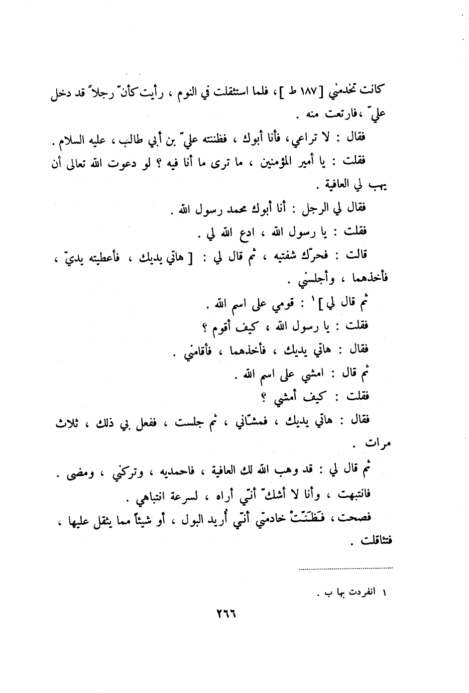 ثم قال لي: قد وهب الله لك العافية، فاحمديه، وتركني، ومضى.