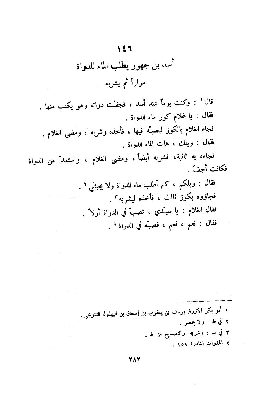 146 أسد بن جهور يطلب الماء للدواة مرارا ثم يشربه