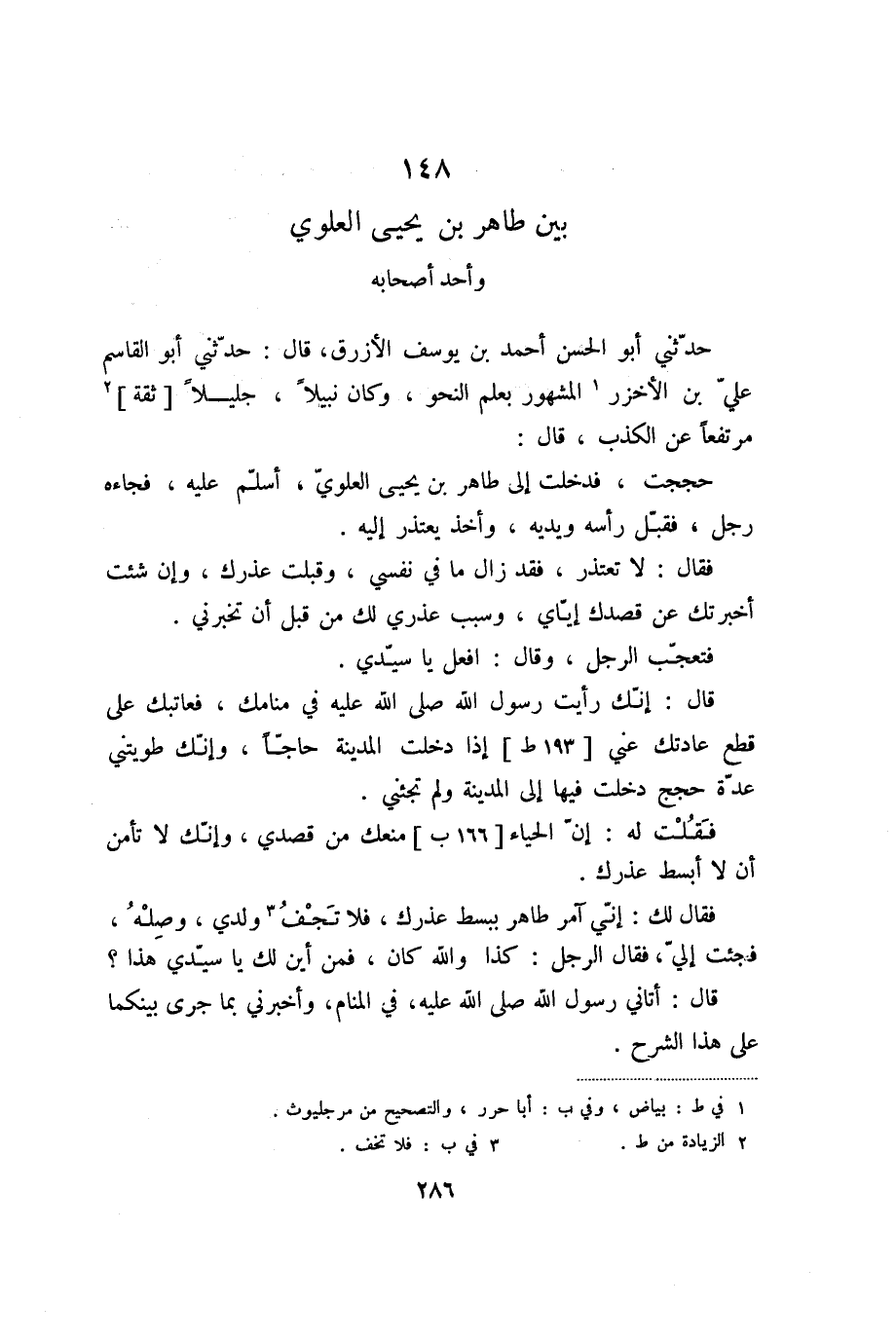148 بين طاهر بن يحيى العلوي وأحد أصحابه