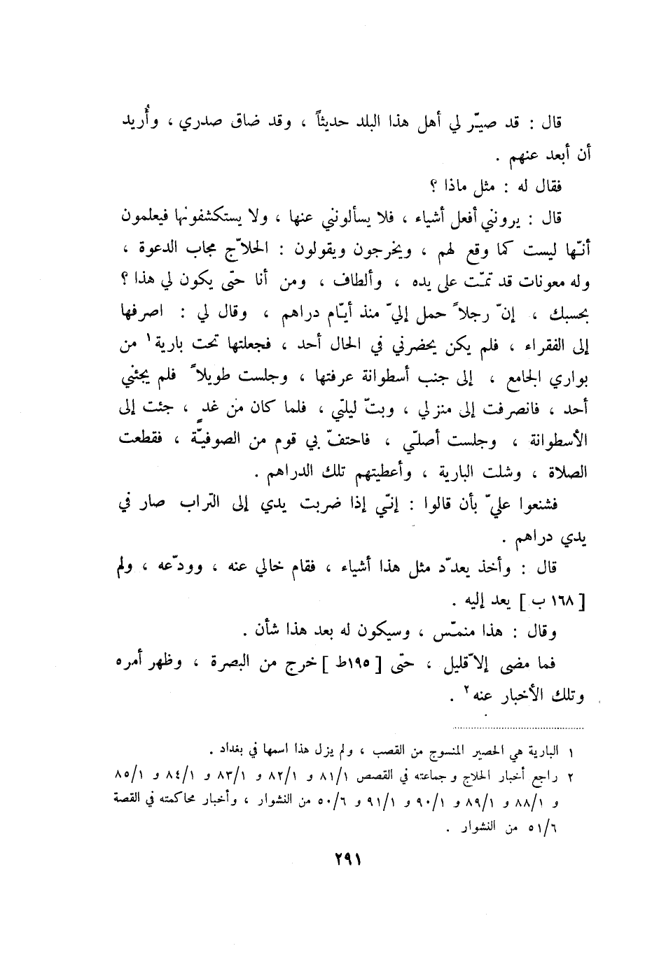 قال: يرونني أفعل أشياء، فلا يسألونني عنها، ولا يستكشفونها فيعلمون أنّها ليست كما وقع لهم، ويخرجون ويقولون: الحلّاج مجاب الدعوة، وله معونات قد تمّت على يده، وألطاف، ومن أنا حتى يكون لي هذا؟