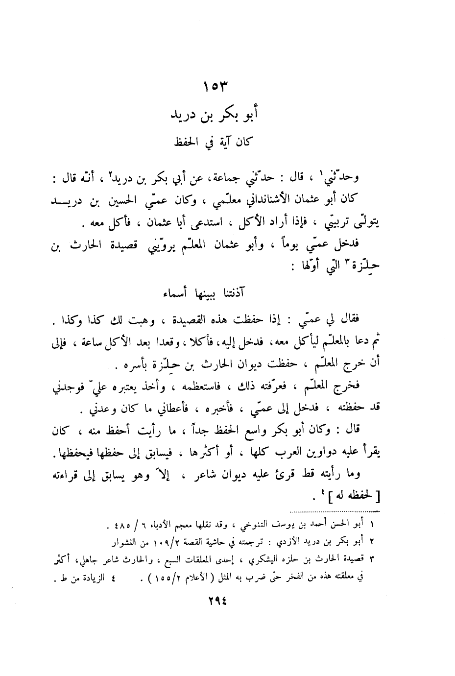 فدخل عمّي يوما، وأبو عثمان المعلّم يروّيني قصيدة الحارث بن حلّزة «3» التي أوّلها:
