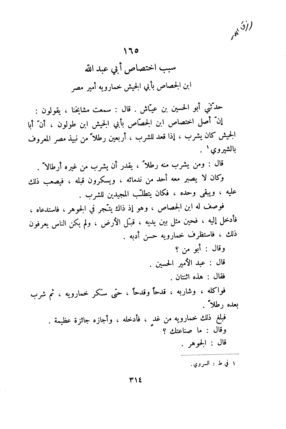 165 سبب اختصاص أبي عبد الله ابن الجصاص بأبي الجيش خمارويه أمير مصر