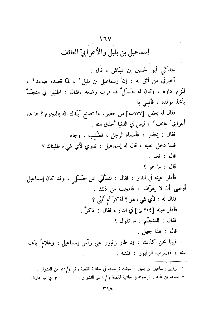 167 إسماعيل بن بلبل والأعرابيّ العائف