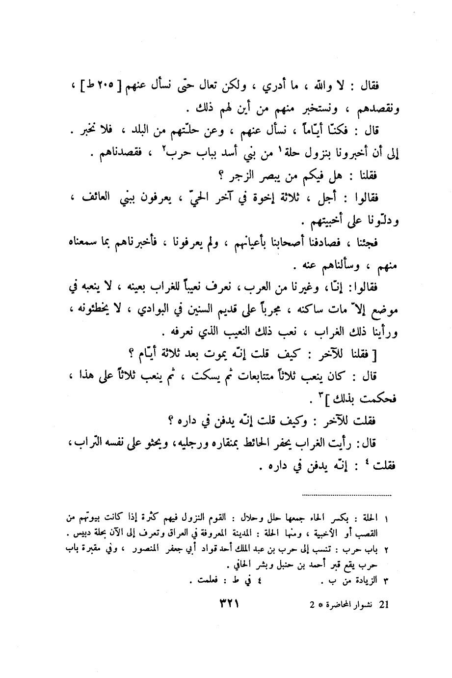 فجئنا، فصادفنا أصحابنا بأعيانهم، ولم يعرفونا، فأخبرناهم بما سمعناه منهم، وسألناهم عنه.