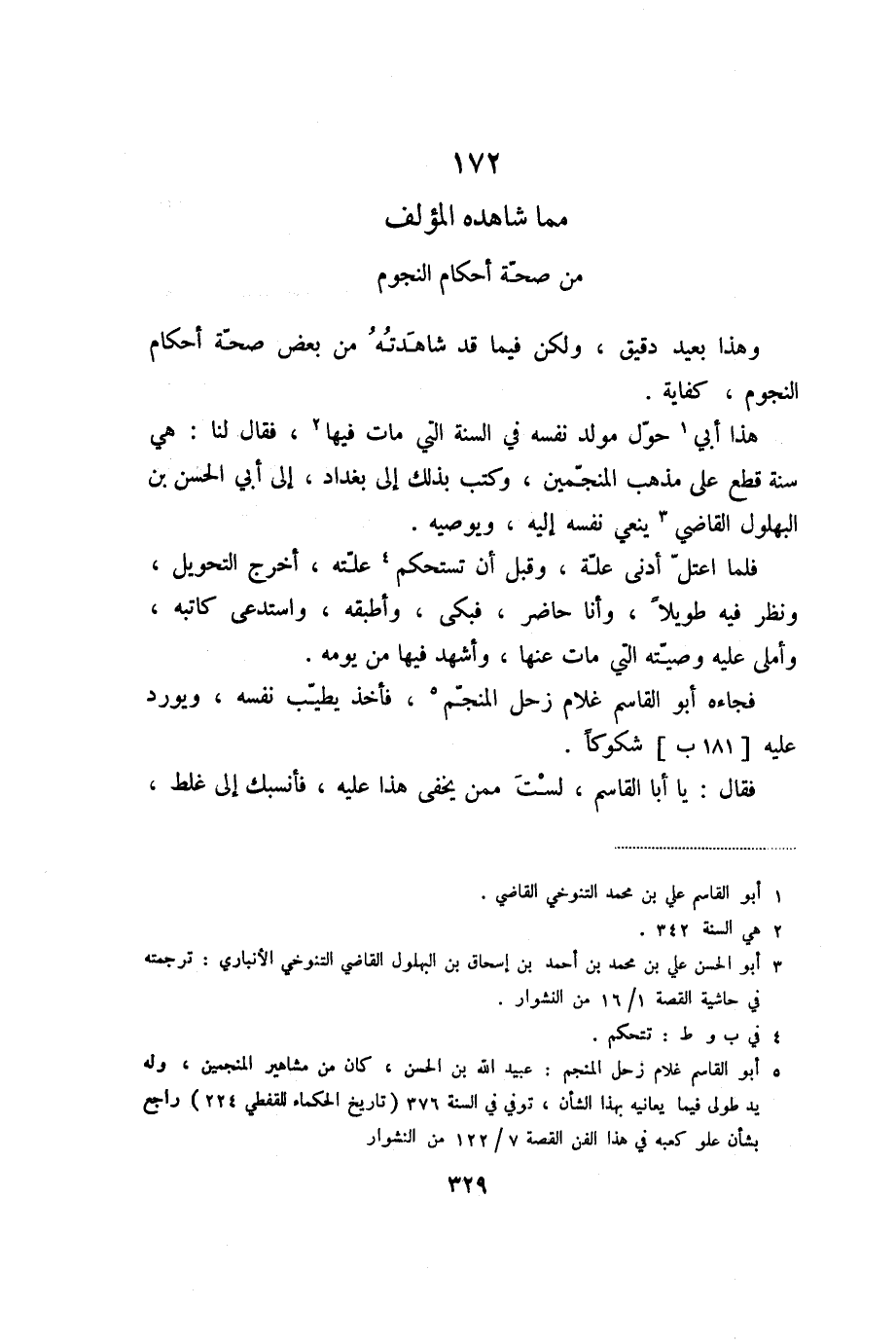 172 مما شاهده المؤلف من صحّة أحكام النجوم