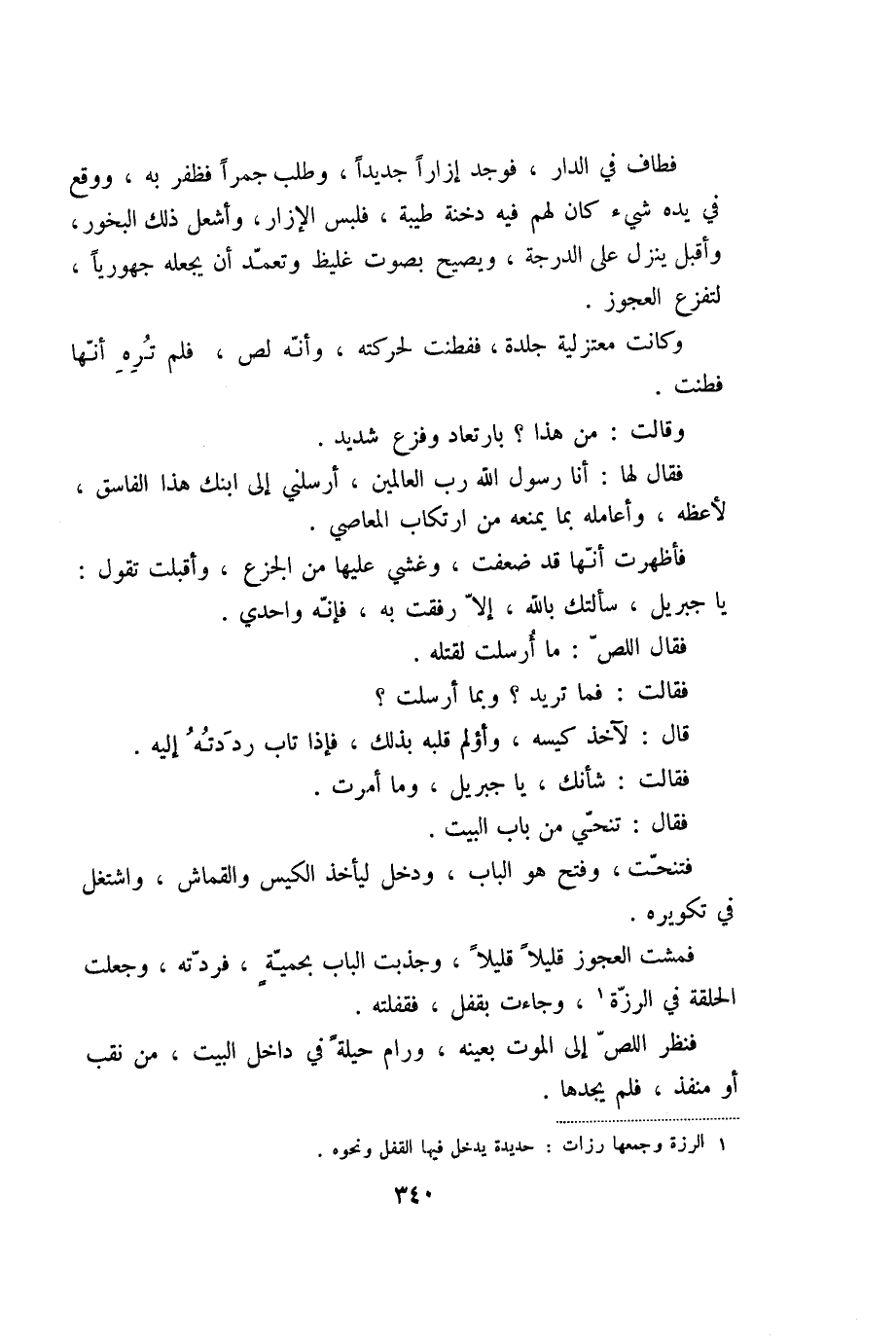 فنظر اللصّ إلى الموت بعينه، ورام حيلة في داخل البيت، من نقب أو منفذ، فلم يجدها.