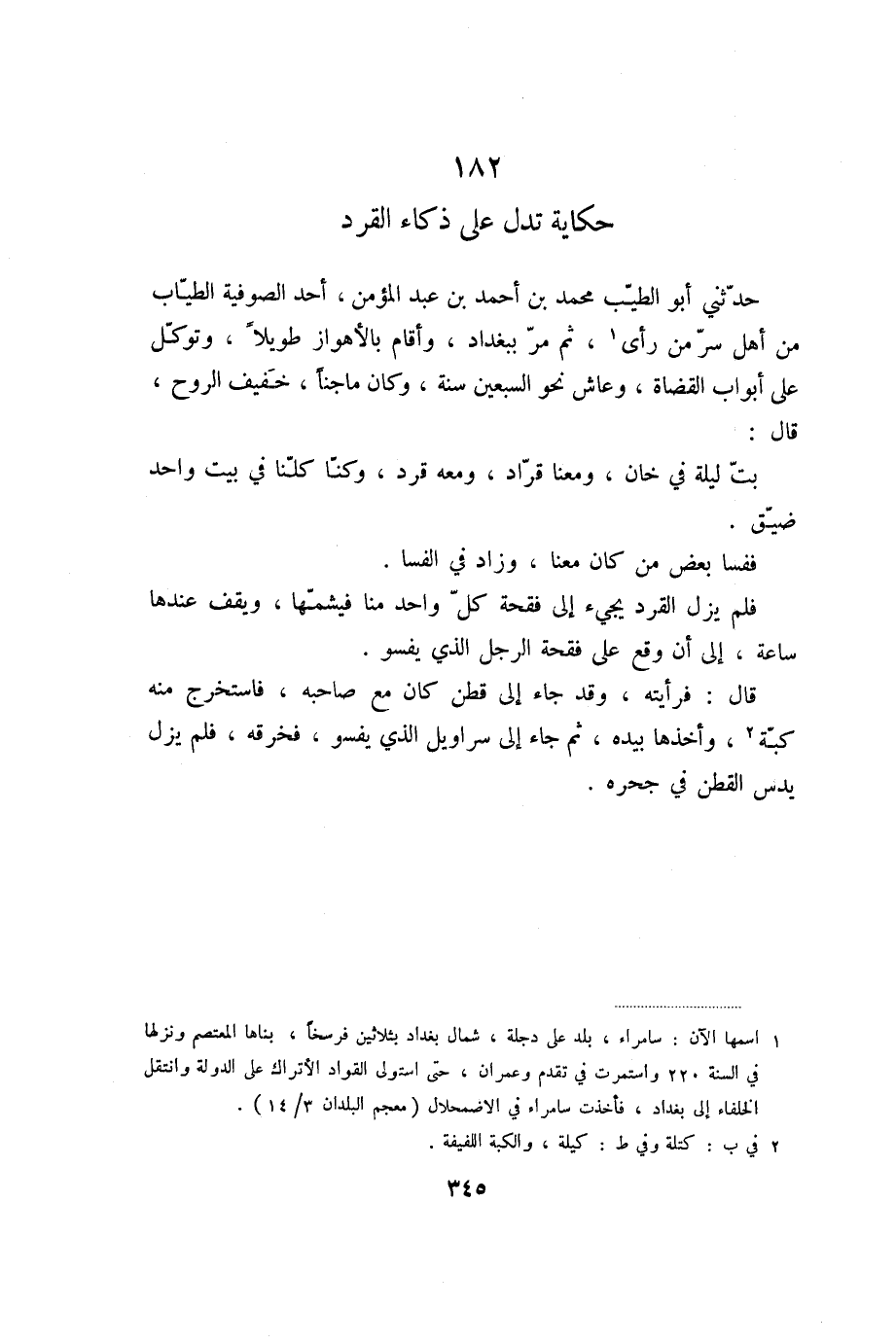 بتّ ليلة في خان، ومعنا قرّاد، ومعه قرد، وكنّا كلّنا في بيت واحد ضيّق.