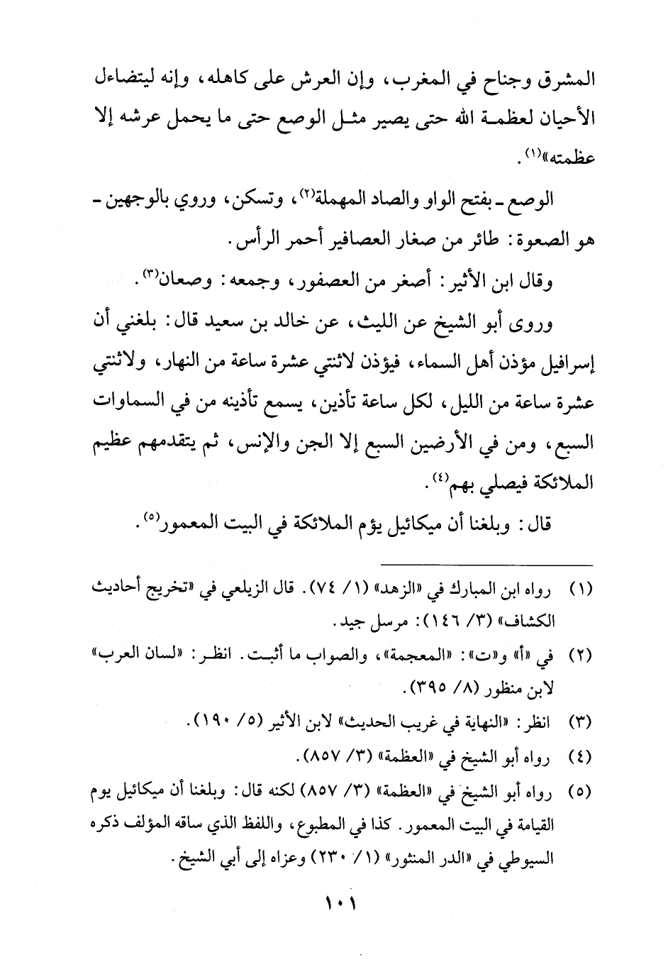 (¬5) رواه أبو الشيخ في "العظمة" (3/ 857) لكنه قال: وبلغنا أن ميكائيل يوم القيامة في البيت المعمور. كذا في المطبوع، واللفظ الذي ساقه المؤلف ذكره السيوطي في "الدر المنثور" (1/ 230) وعزاه إلى أبي الشيخ.