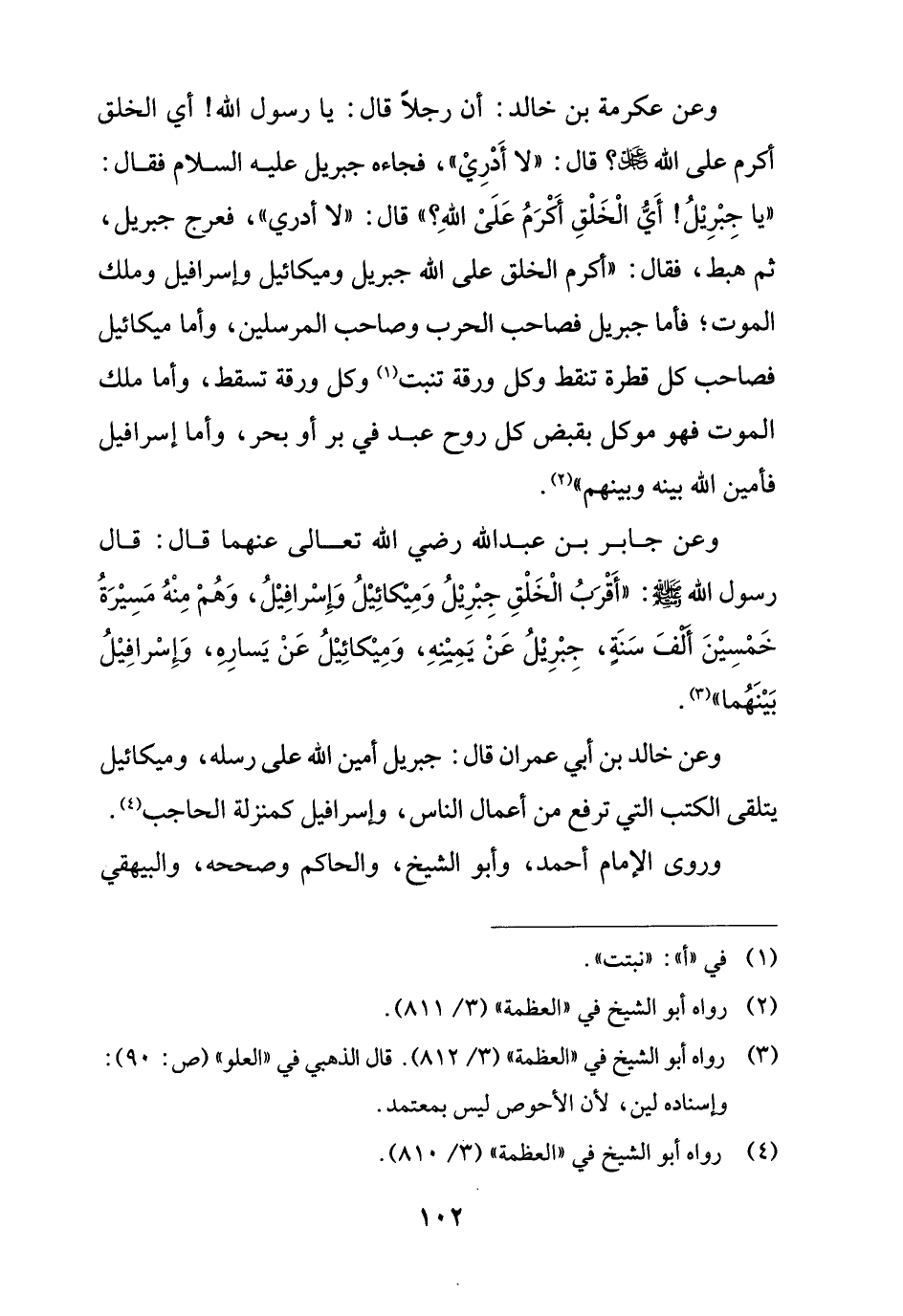 (¬3) رواه أبو الشيخ في "العظمة" (3/ 812). قال الذهبي في "العلو" (ص: 90): وإسناده لين، لأن الأحوص ليس بمعتمد.