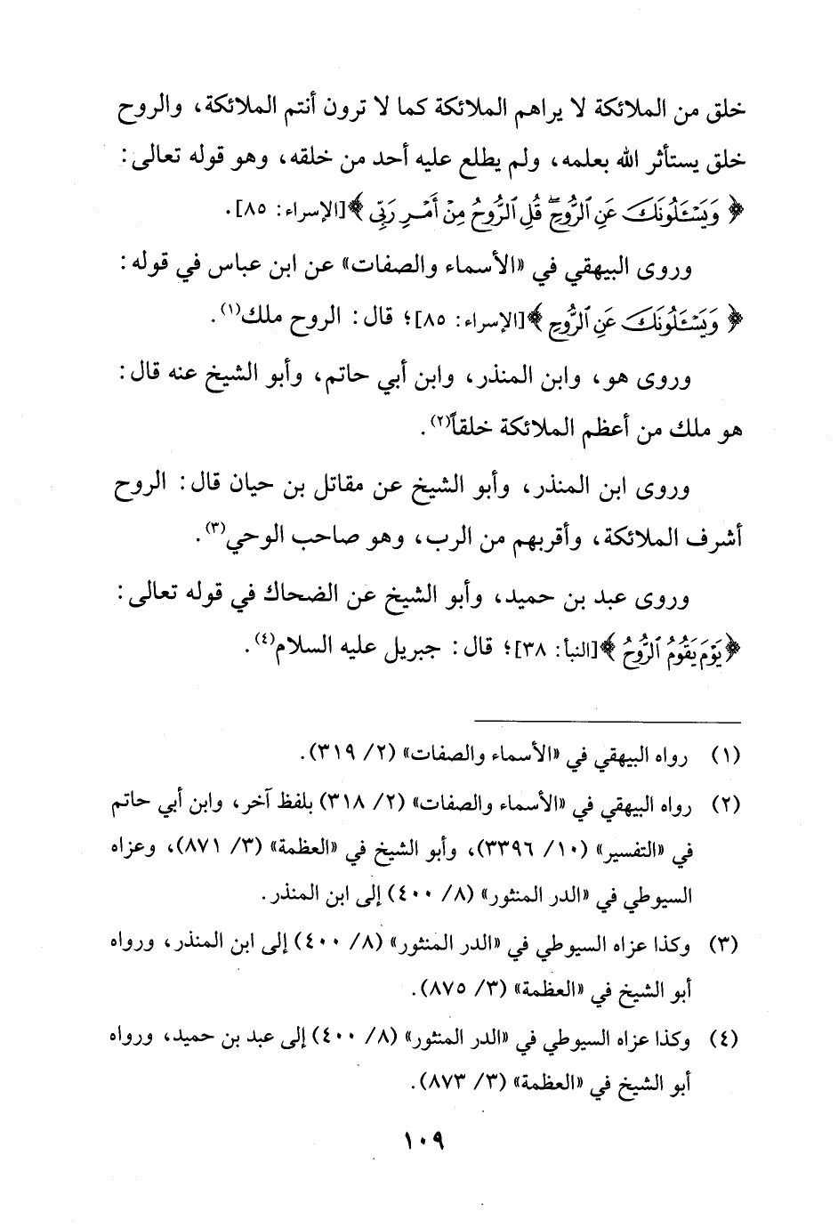 وروى البيهقي في "الأسماء والصفات" عن ابن عباس في قوله: {وَيَسْأَلُونَكَ عَنِ الرُّوحِ} [الإسراء: 85]؛ قال: الروح ملك (¬1).
