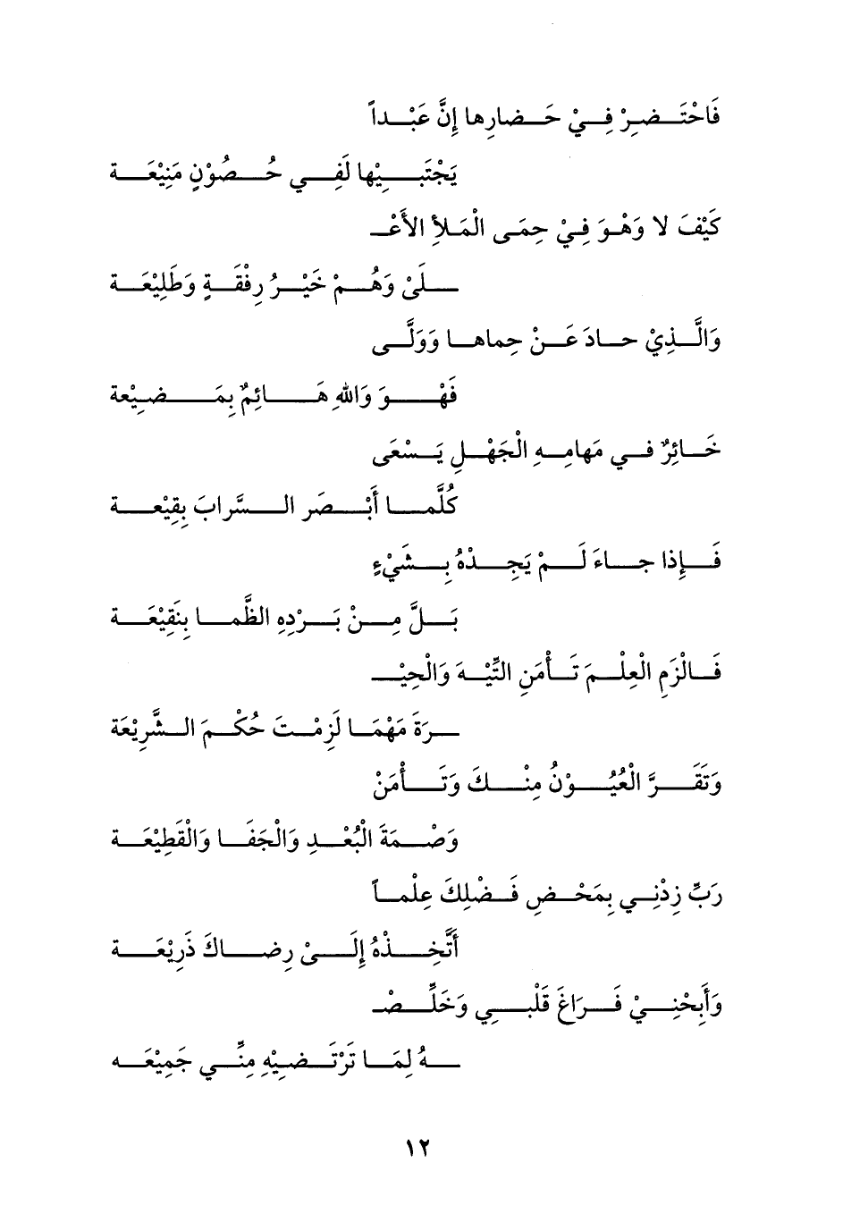 رَبِّ زِدْنِي بِمَحْضِ فَضْلِكَ عِلْماً ... أتَّخِذْهُ إِلَىْ رِضاكَ ذَرِيْعَة