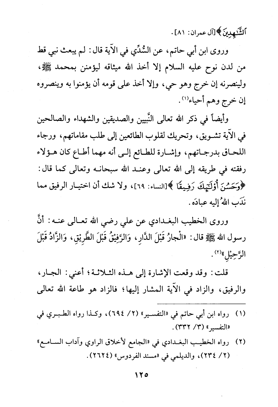 قلت: وقد وقعت الإشارة إلى هذه الثلاثة؛ أعني: الجار، والرفيق، والزاد في الآية المشار إليها؛ فالزاد هو طاعة الله تعالى