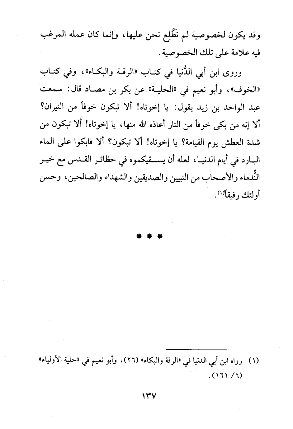 (¬1) رواه ابن أبي الدنيا في "الرقة والبكاء" (26)، وأبو نعيم في "حلية الأولياء" (6/ 161).