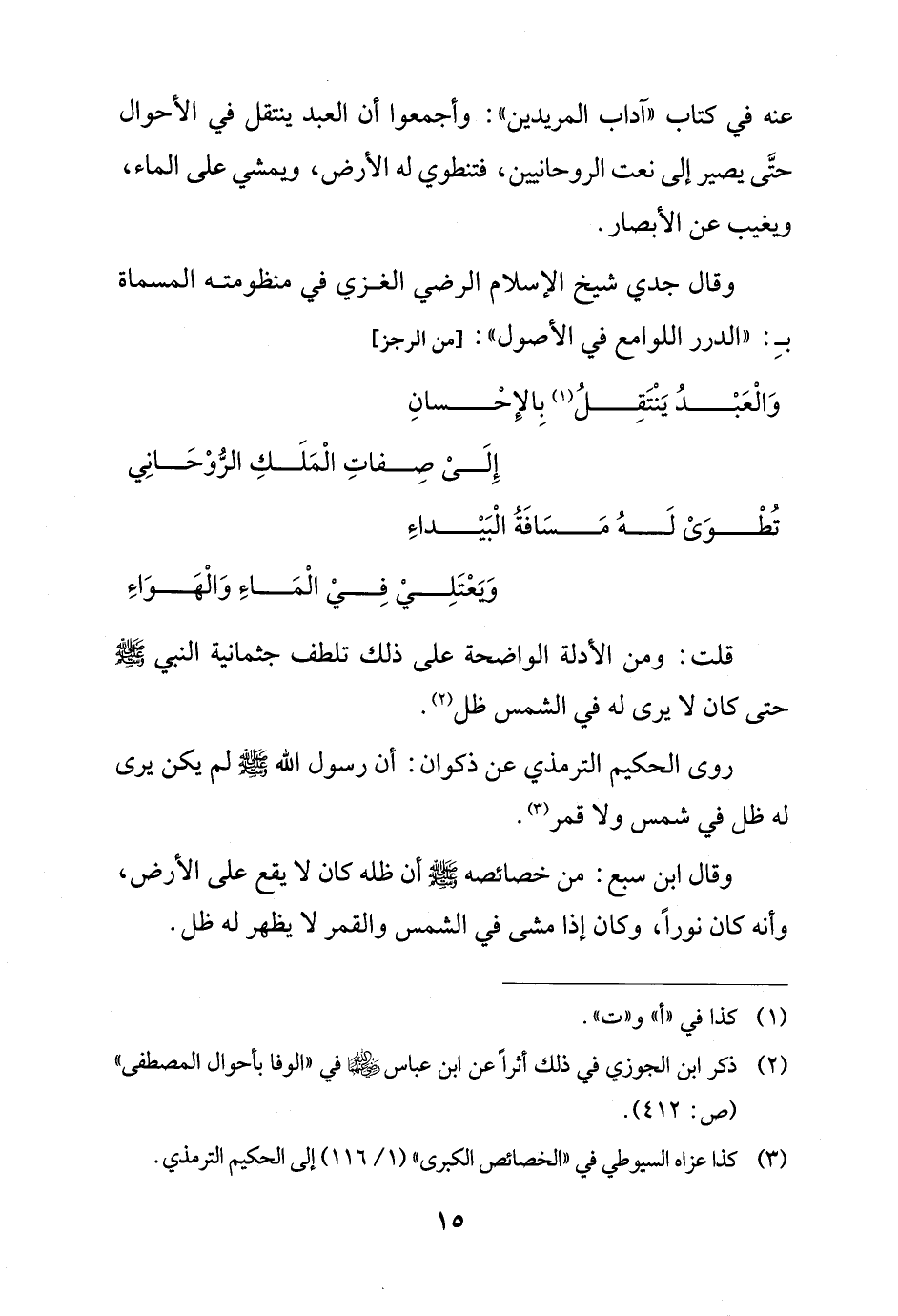 قلت: ومن الأدلة الواضحة على ذلك تلطف جثمانية النبي - صلى الله عليه وسلم - حتى كان لا يرى له في الشمس ظل (¬2).