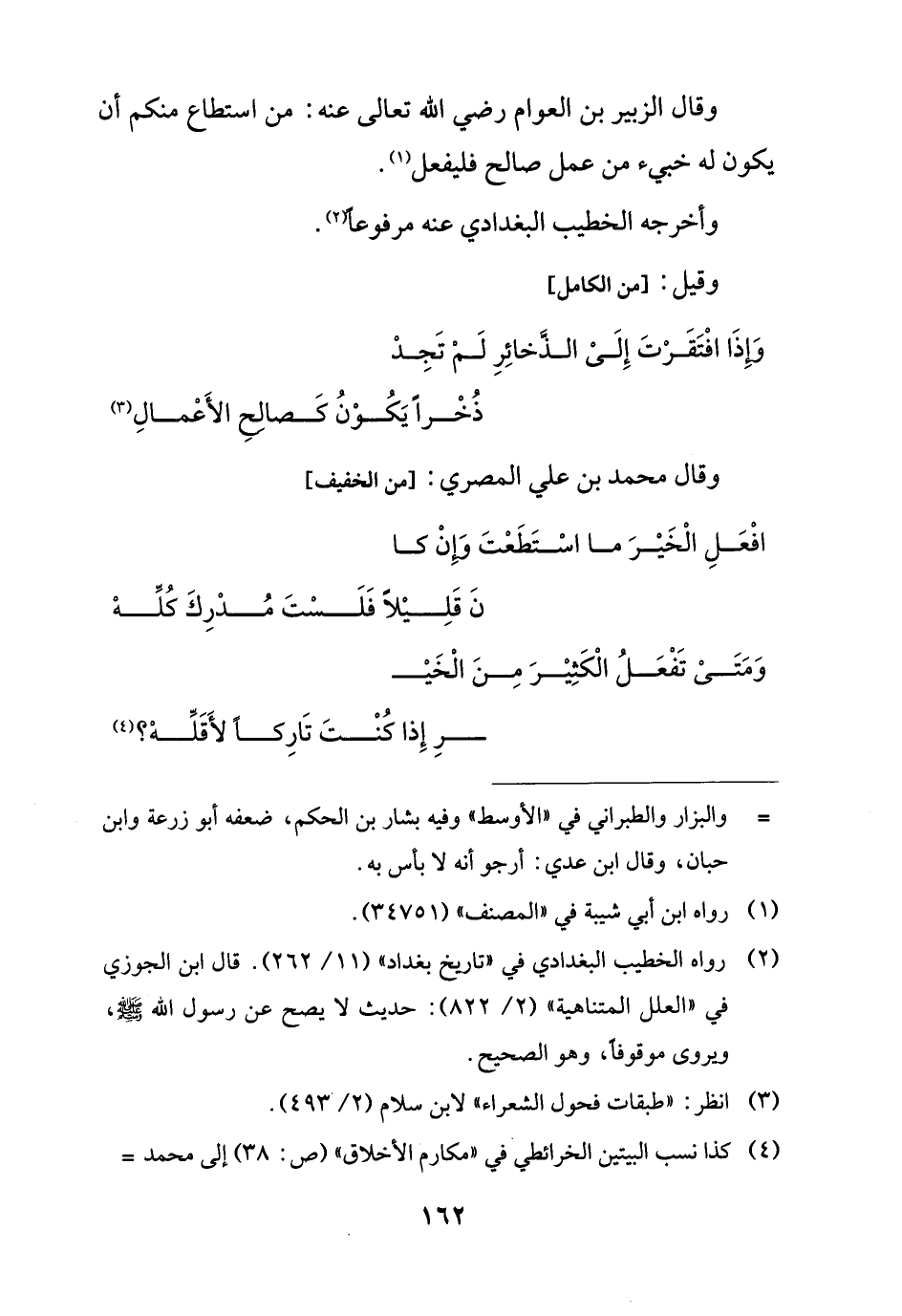 وَمَتَىْ تَفْعَلُ الْكَثِيْرَ مِنَ الْخَيـ ... ـر إِذا كُنْتَ تَارِكًا لأَقَلِّهْ؟ (¬4)