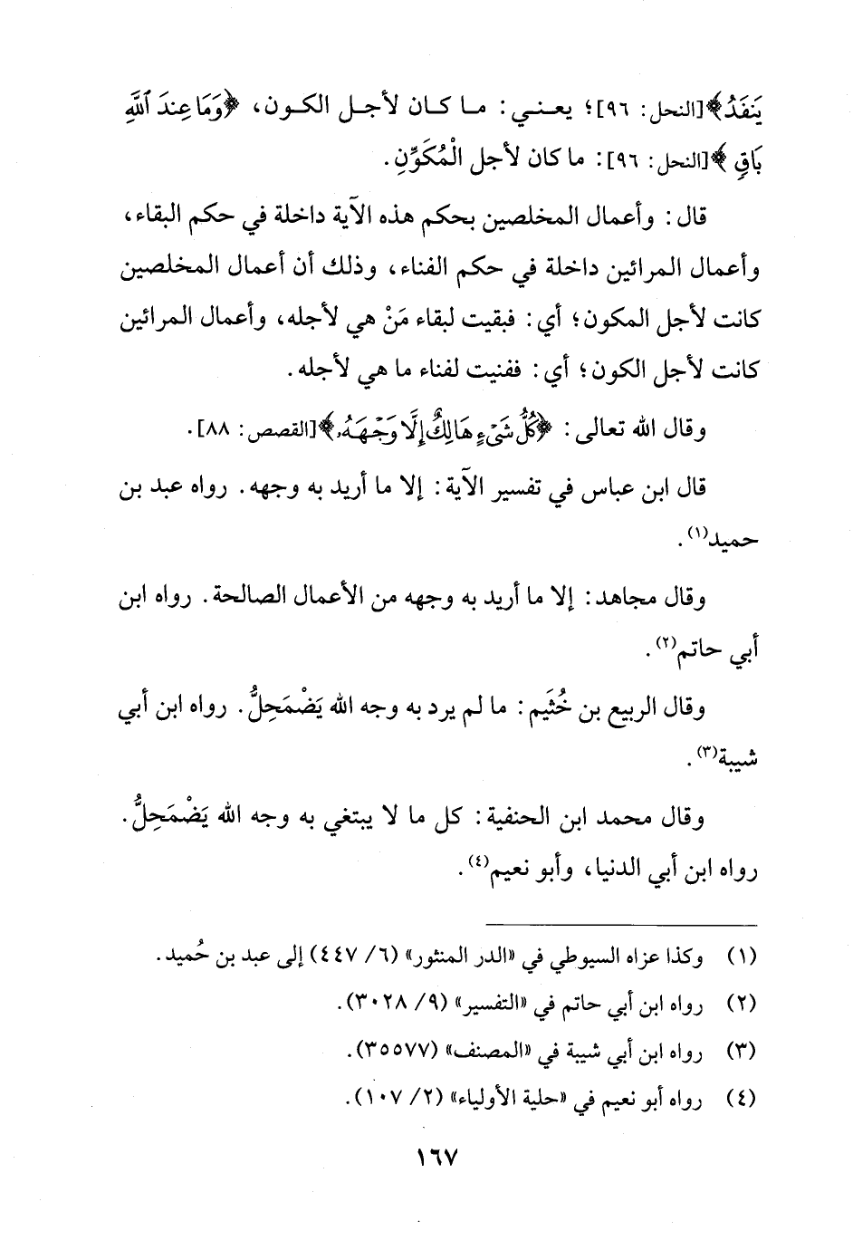 وقال الله تعالى: {كُلُّ شَيْءٍ هَالِكٌ إِلَّا وَجْهَهُ (88)} [القصص: 88].