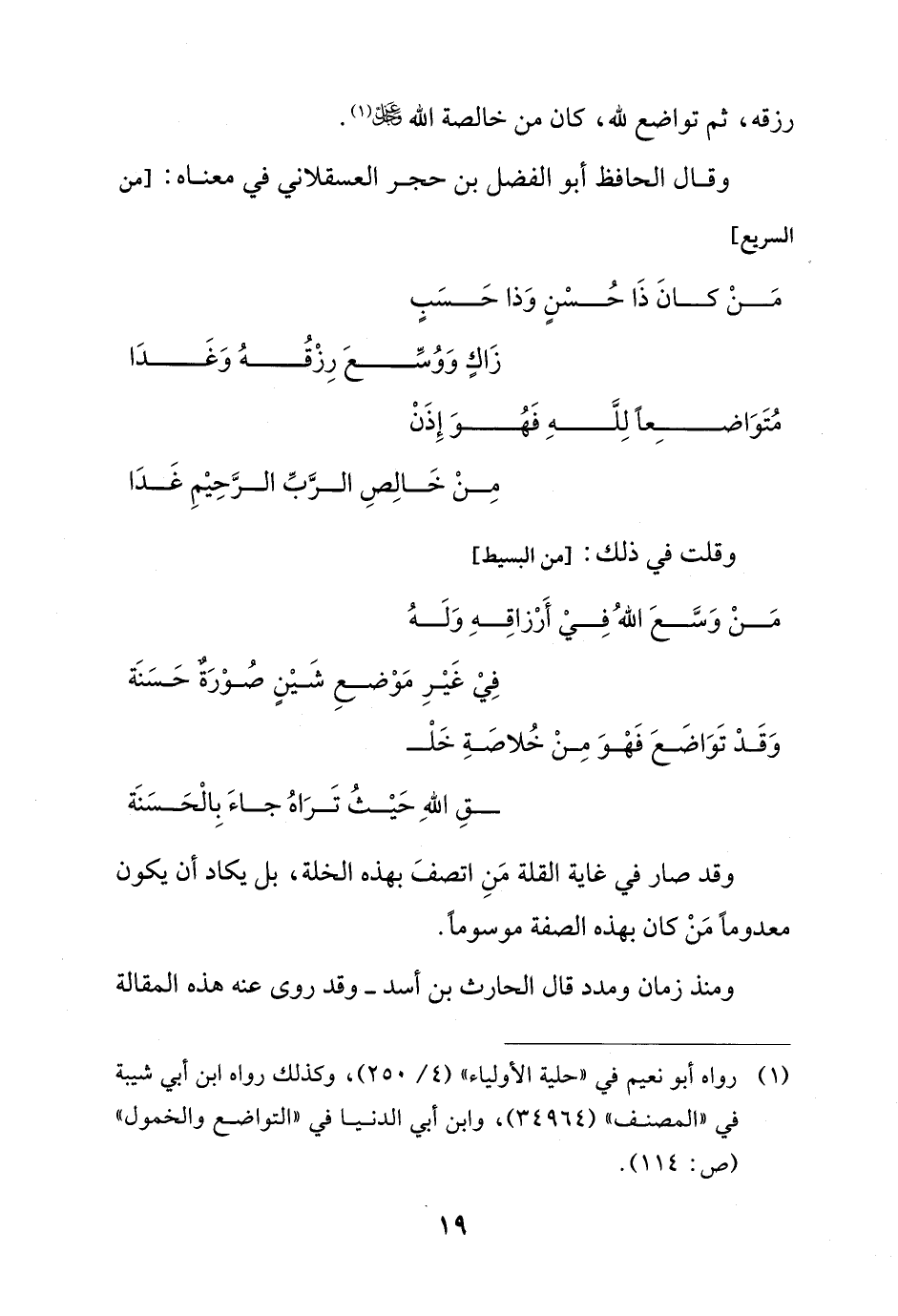 وَقَدْ تَوَاضَعَ فَهْوَ مِنْ خُلاصَةِ خَلـ ... ــــقِ اللهِ حَيْثُ تَرَاهُ جاءَ بِالْحَسَنَة