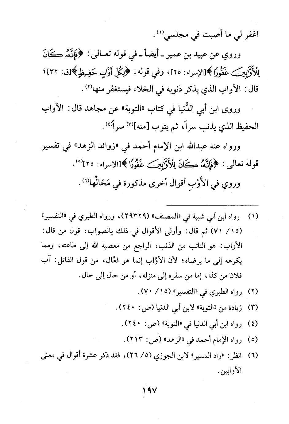 (¬6) انظر: "زاد المسير" لابن الجوزي (5/ 26)، فقد ذكر عشرة أقوال في معنى الأوابين.