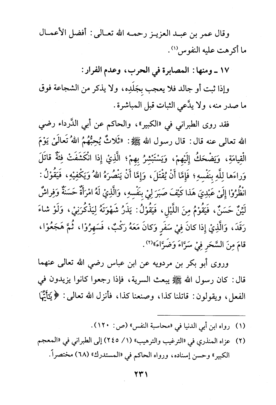 17 - ومنها: المصابرة في الحرب، وعدم الفرار: