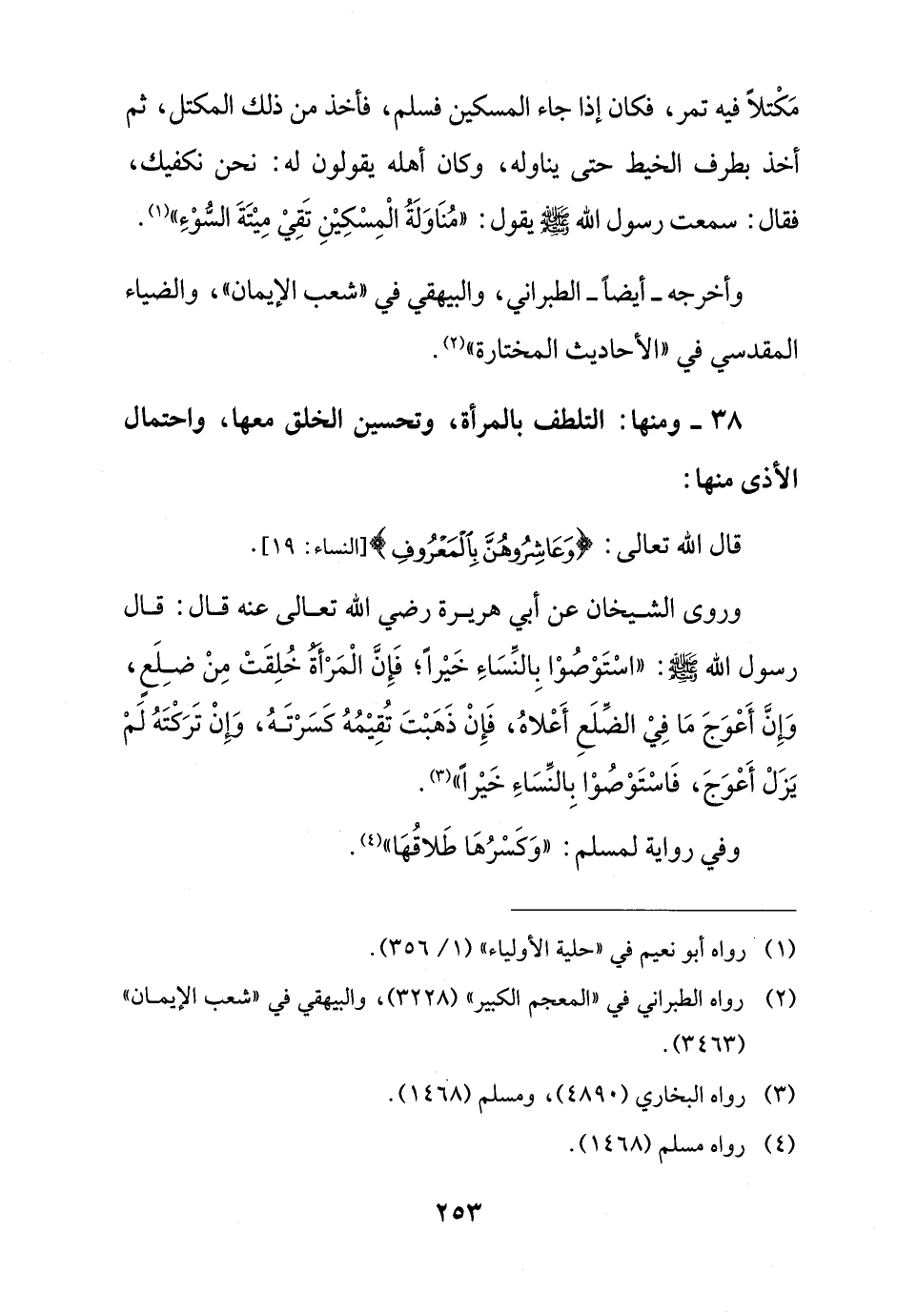 38 - ومنها: التلطف بالمرأة، وتحسين الخلق معها، واحتمال الأذى منها: