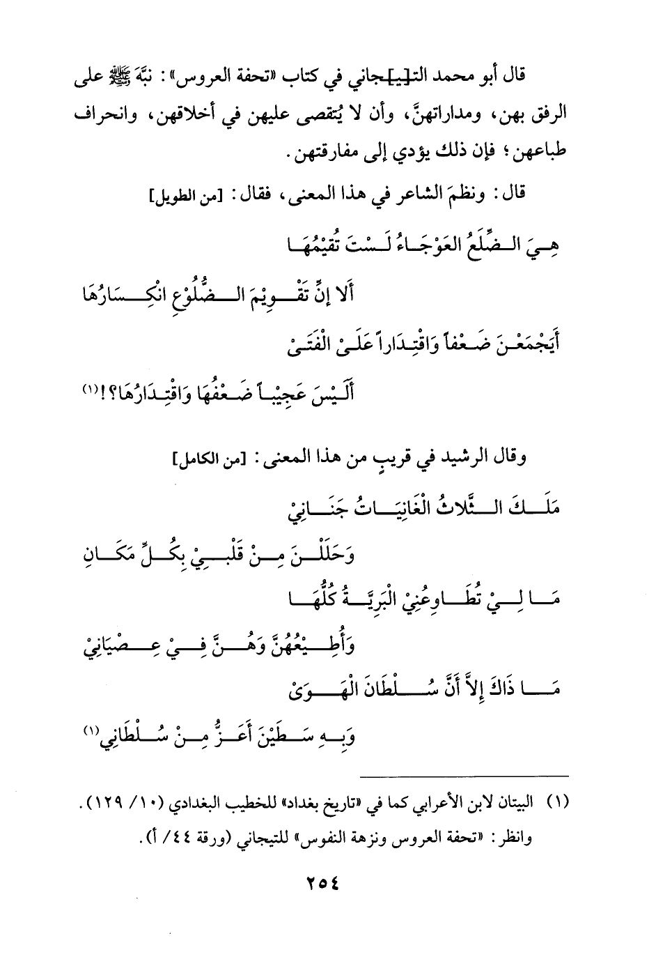 (¬1) البيتان لابن الأعرابي كما في "تاريخ بغداد" للخطيب البغدادي (10/ 129). وانظر: "تحفة العروس ونزهة النفوس" للتيجاني (ورقة 44/ أ).