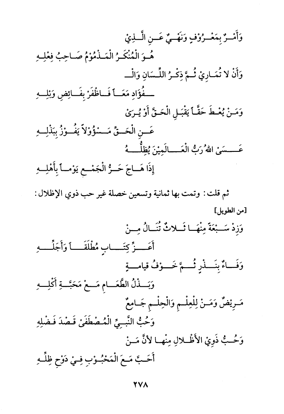 ثم قلت: وتمت بها ثمانية وتسعين خصلة غير حب ذوي الإظلال: [من الطويل]