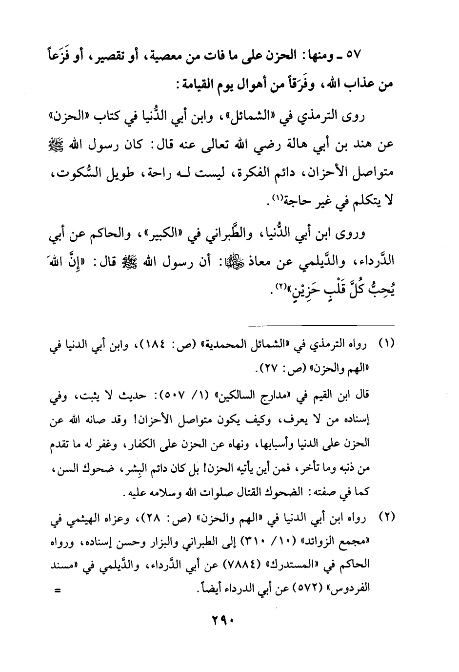 وروى ابن أبي الدُّنيا، والطَّبراني في "الكبير"، والحاكم عن أبي الدَّرداء، والدَّيلمي عن معاذ - رضي الله عنهما -: أن رسول الله - صلى الله عليه وسلم - قال: "إِنَّ الله يُحِبُّ كُلَّ قَلْبِ حَزِيْنِ" (¬2).