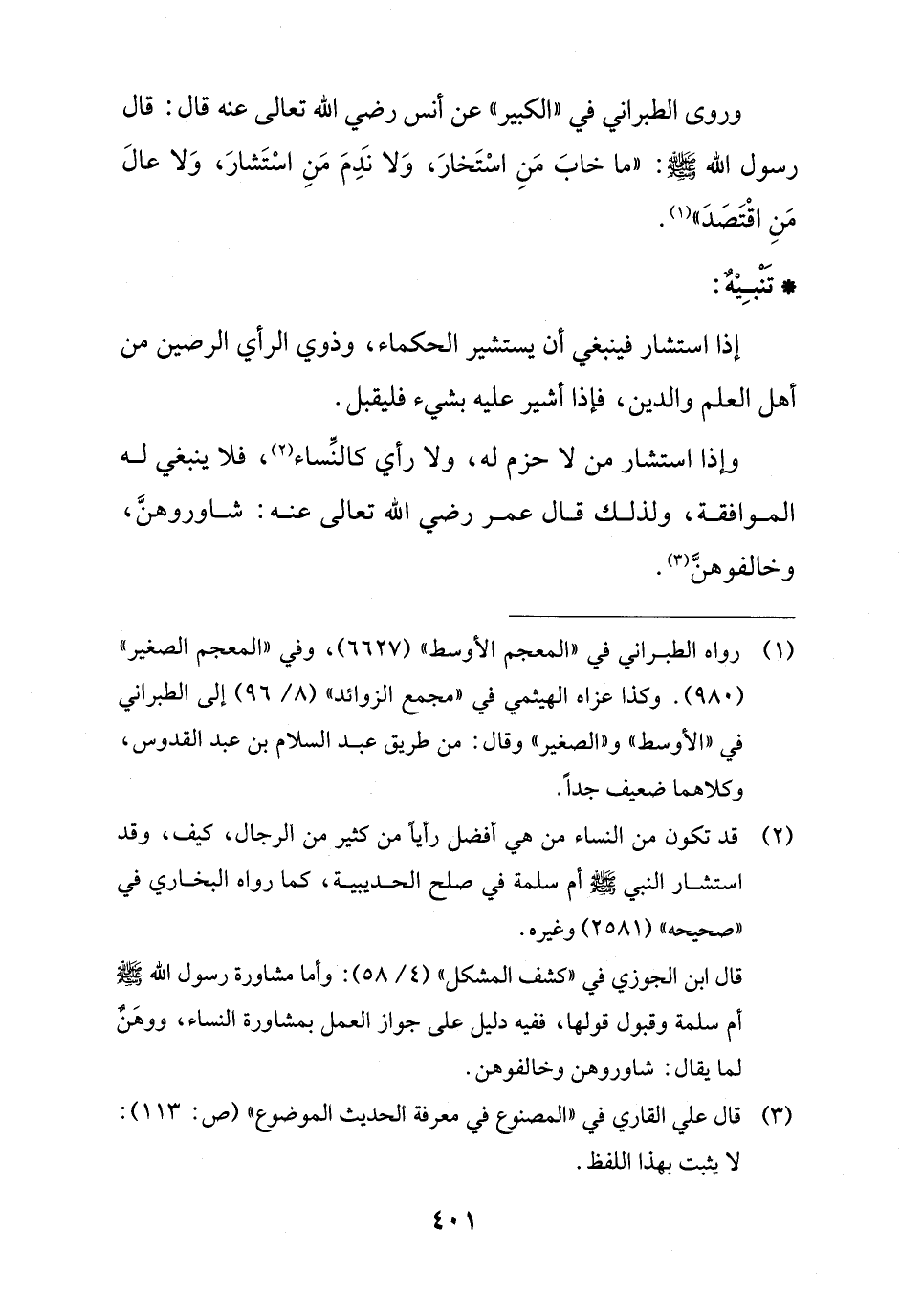 (¬2) قد تكون من النساء من هي أفضل رأيًا من كثير من الرجال، كيف، وقد استشار النبي - صلى الله عليه وسلم - أم سلمة في صلح الحديبية، كما رواه البخاري في "صحيحه" (2581) وغيره.