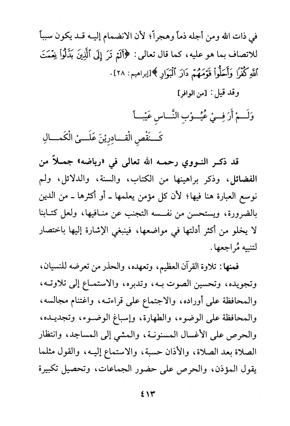 وَلَمْ أَرَ فِيْ عُيُوْبِ النَّاسِ عَيْبًا ... كَنَقْصِ الْقادِرينَ عَلَىْ الْكَمالِ