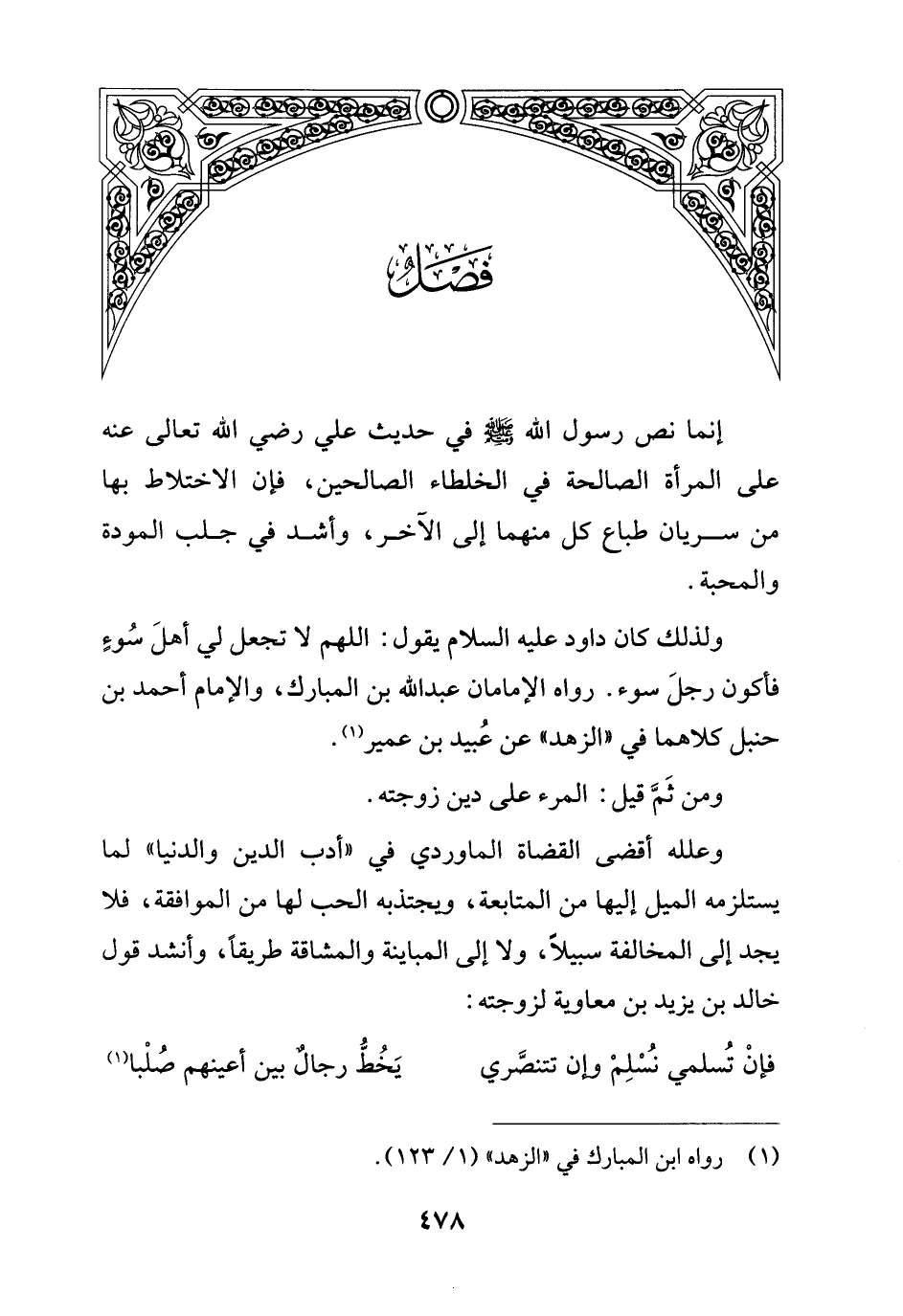 وعلله أقضى القضاة الماوردي في "أدب الدين والدنياهـ لما يستلزمه الميل إليها من المتابعة، ويجتذبه الحب لها من الموافقة، فلا يجد إلى المخالفة سبيلاً، ولا إلى المباينة والمشاقة طريقاً، وأنشد قول خالد بن يزيد بن معاوية لزوجته: