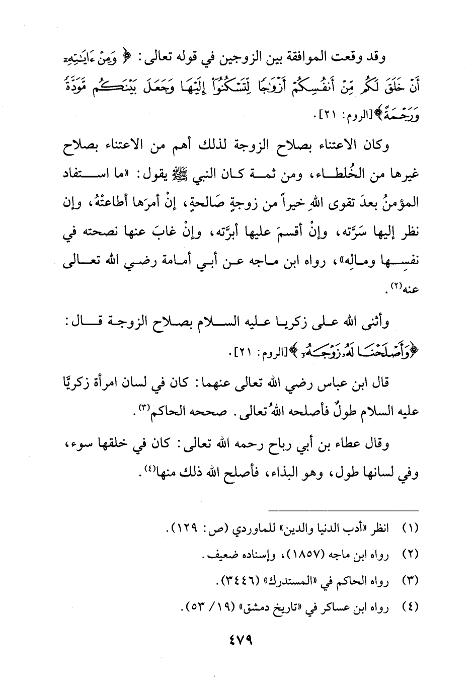 وأثنى الله على زكريا عليه السلام بصلاح الزوجة قال: {وَأَصْلَحْنَا لَهُ زَوْجَهُ} [الأنبياء: 90].