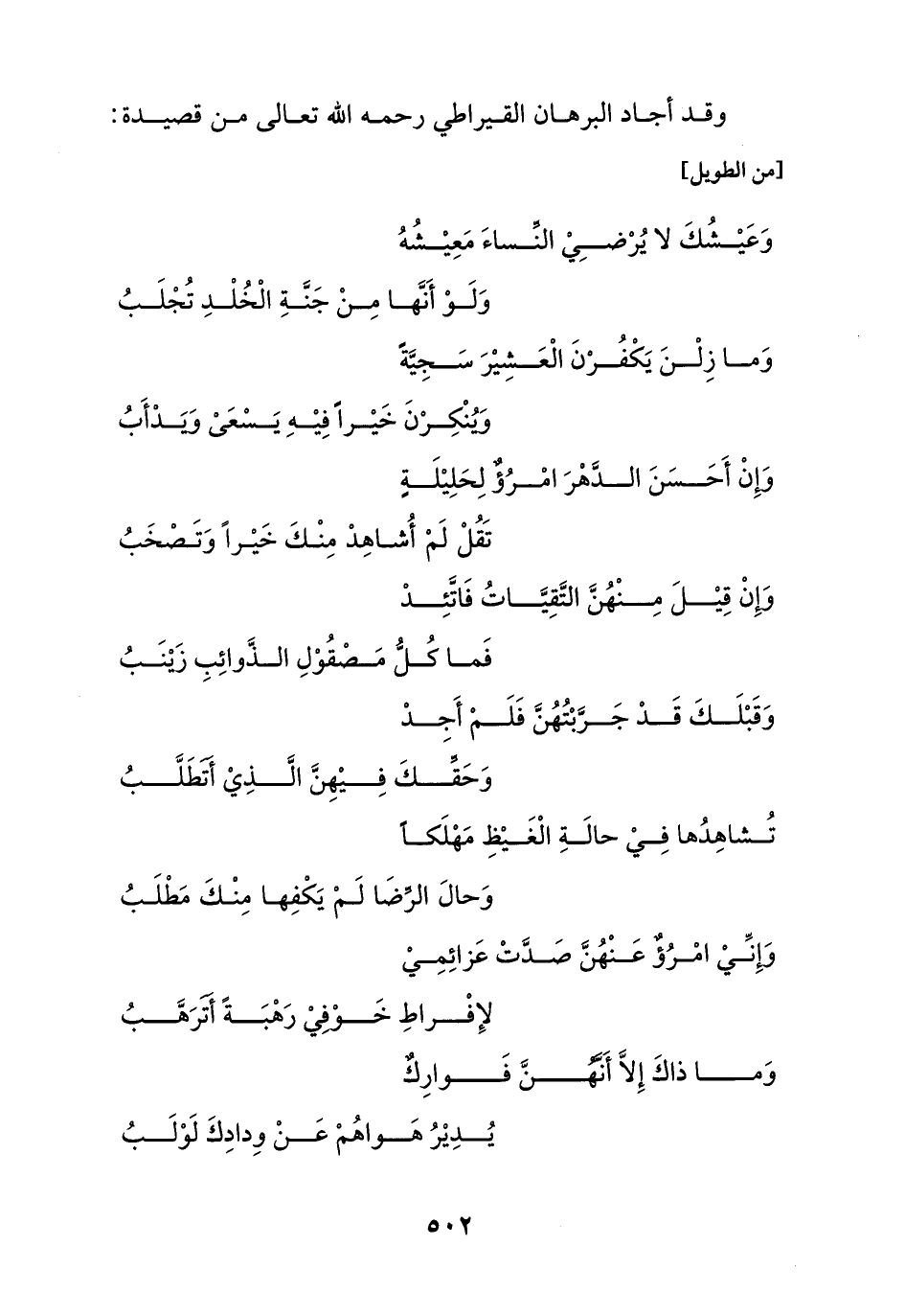 وقد أجاد البرهان القيراطي رحمه الله تعالى من قصيدة: [من الطويل]