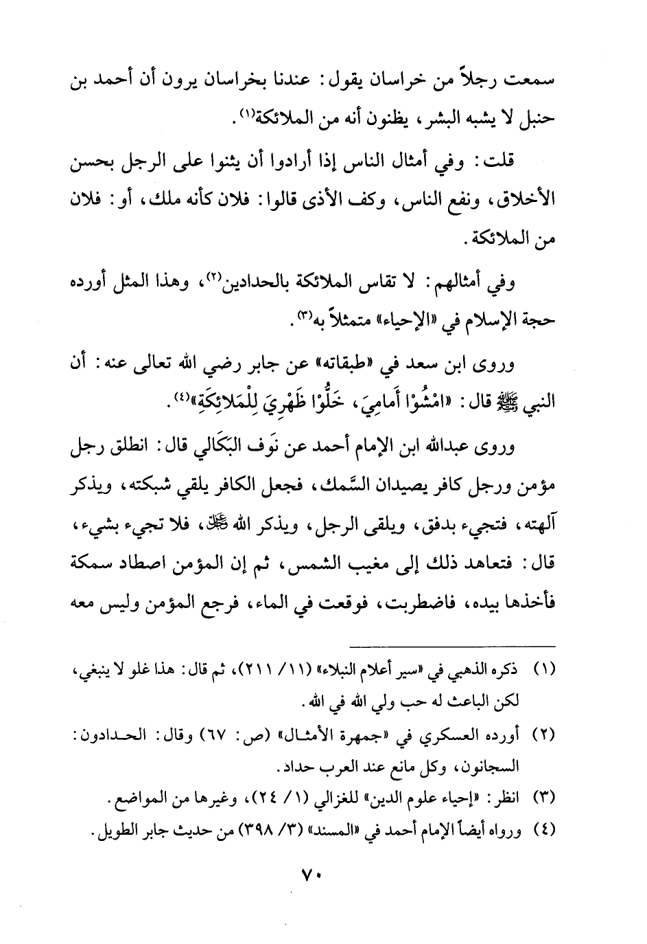 سمعت رجلاً من خراسان يقول: عندنا بخراسان يرون أن أحمد بن حنبل لا يشبه البشر، يظنون أنه من الملائكة (¬1).