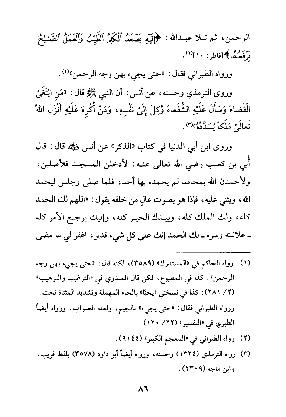 الرحمن، ثم تلا عبد الله: {إِلَيْهِ يَصْعَدُ الْكَلِمُ الطَّيِّبُ وَالْعَمَلُ الصَّالِحُ يَرْفَعُهُ} [فاطر: 10] (¬1).