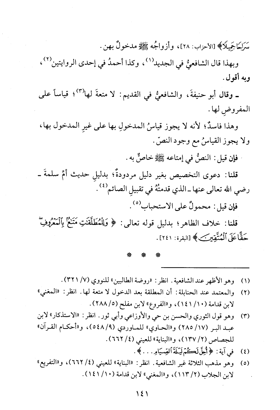 (¬2) والمعتمد عند الحنابلة: أن المطلقة بعد الدخول لا متعة لها. انظر: "المغني" لابن قدامة (10/ 141)، و"الفروع" لابن مفلح (5/ 288).