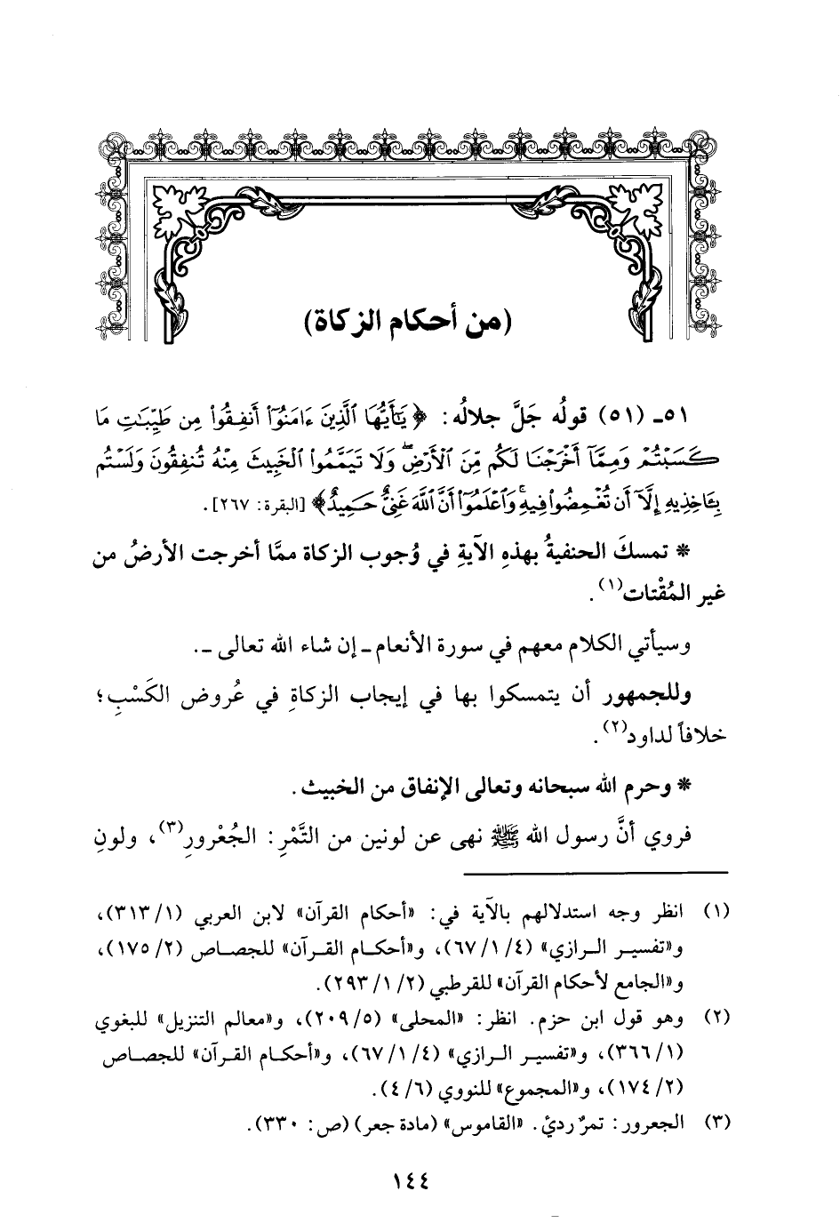 51 - (51) قولُه جَل جلالُه: {يَاأَيُّهَا الَّذِينَ آمَنُوا أَنْفِقُوا مِنْ طَيِّبَاتِ مَا كَسَبْتُمْ وَمِمَّا أَخْرَجْنَا لَكُمْ مِنَ الْأَرْضِ وَلَا تَيَمَّمُوا الْخَبِيثَ مِنْهُ تُنْفِقُونَ وَلَسْتُمْ بِآخِذِيهِ إِلَّا أَنْ تُغْمِضُوا فِيهِ وَاعْلَمُوا أَنَّ اللَّهَ غَنِيٌّ حَمِيدٌ (267)} [البقرة: 267].