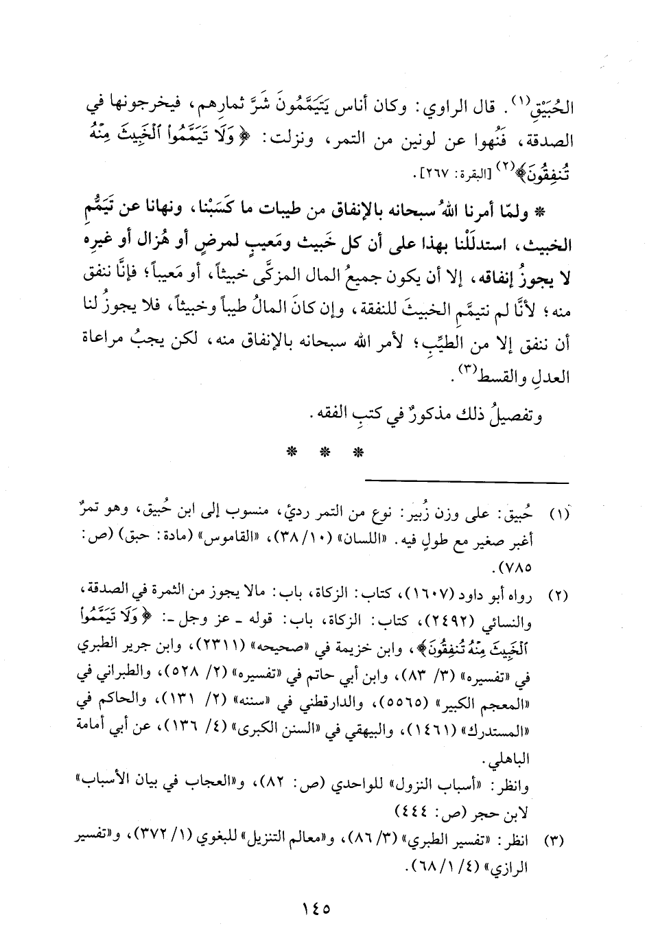 (¬2) رواه أبو داود (1607)، كتاب: الزكاة، باب: ما لا يجوز من الثمرة في الصدقة، والنسائي (2492)، كتاب: الزكاة، باب: قوله -عز وجل-: {وَلَا تَيَمَّمُواْ الخَبِيثَ مِنهُ تُنفِقُونَ}، وابن خزيمة في "صحيحه" (2311)، وابن جرير الطبري في "تفسيره" (3/ 83)، وابن أبي حاتم في "تفسيره" (2/ 528)، والطبراني في "المعجم الكبير" (5565)، والدارقطني في "سننه" (2/ 131)، والحاكم في "المستدرك" (1461)، والبيهقي في "السنن الكبرى" (4/ 136)، عن أبي أمامة الباهلي.