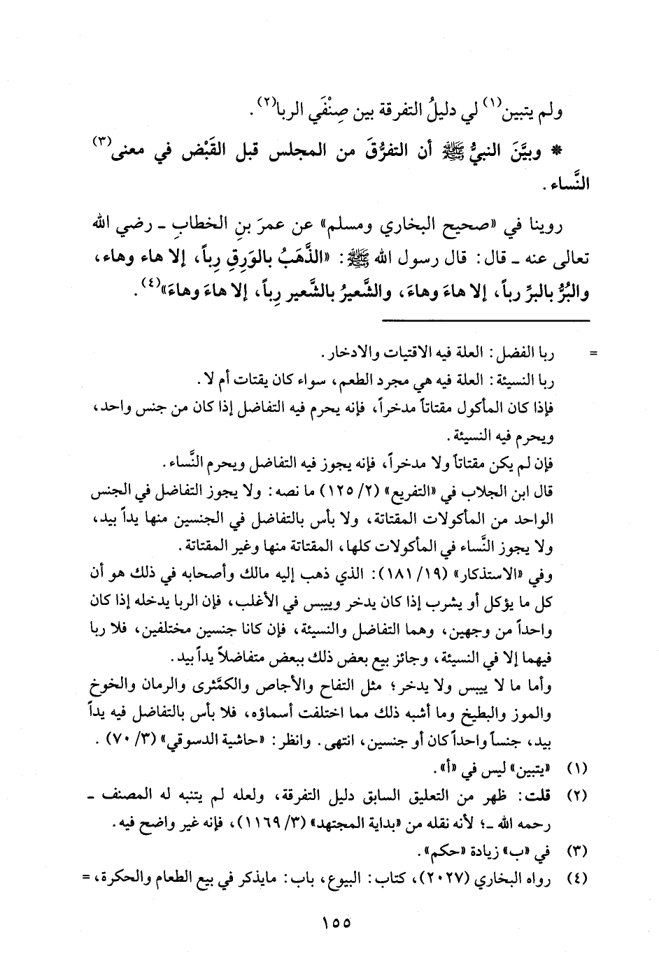 ولم يتبين (¬1) لي دليلُ التفرقة بين صِنْفَي الربا (¬2).