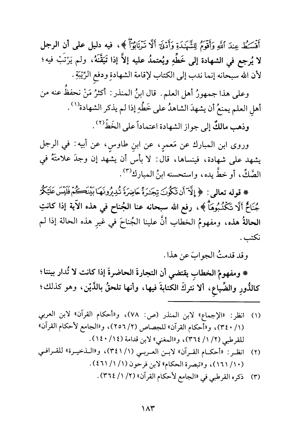 * ومفهومُ الخطابِ يقتضي أن التجارةَ الحاضرةَ إذا كانت لا تُدار بيننا؛ كالدُّورِ والضِّياعِ، ألا نتركَ الكتابةَ فيها، وأنها تلحقُ بالدَّيْن، وهو كذلك؛