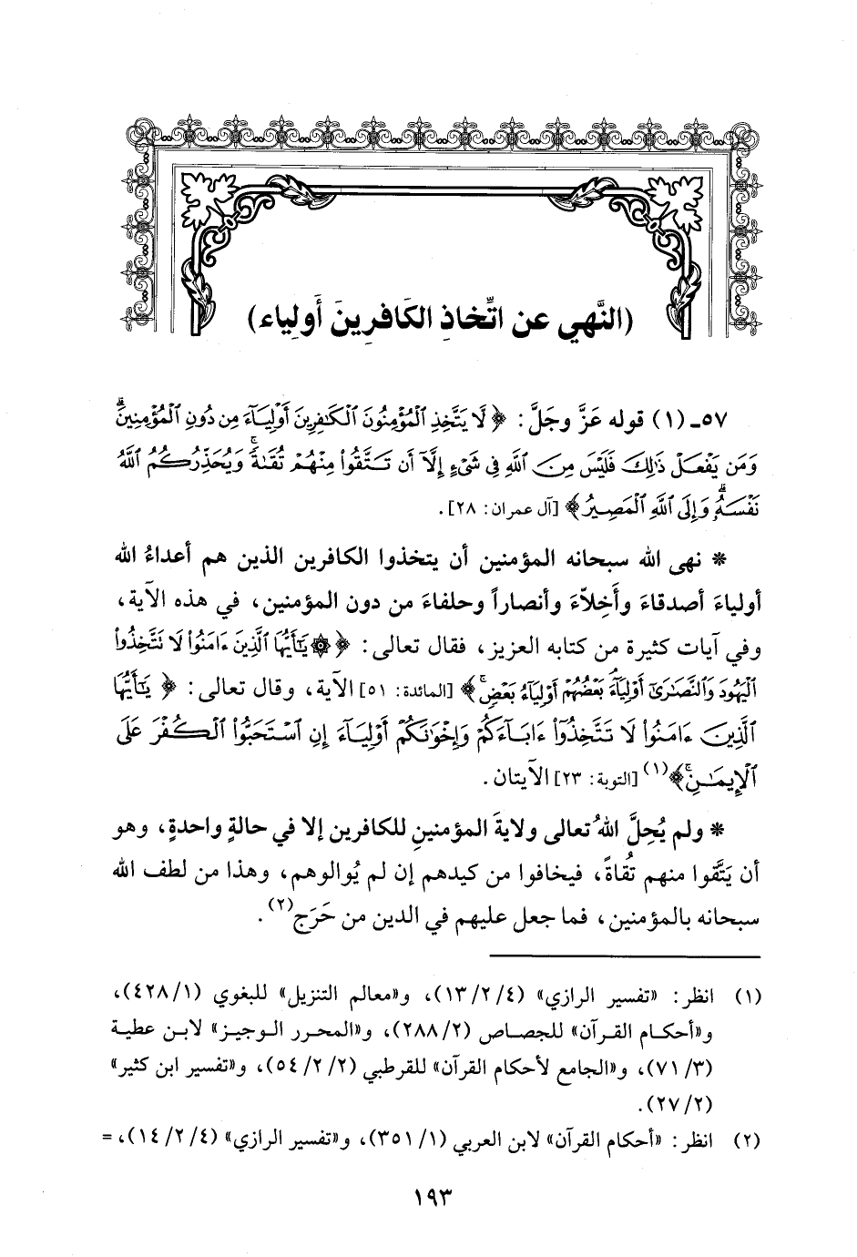 57 - (¬1) قوله عَزَّ وجَلَّ: {لَا يَتَّخِذِ الْمُؤْمِنُونَ الْكَافِرِينَ أَوْلِيَاءَ مِنْ دُونِ الْمُؤْمِنِينَ وَمَنْ يَفْعَلْ ذَلِكَ فَلَيْسَ مِنَ اللَّهِ فِي شَيْءٍ إِلَّا أَنْ تَتَّقُوا مِنْهُمْ تُقَاةً وَيُحَذِّرُكُمُ اللَّهُ نَفْسَهُ وَإِلَى اللَّهِ الْمَصِيرُ} [آل عمران: 28].