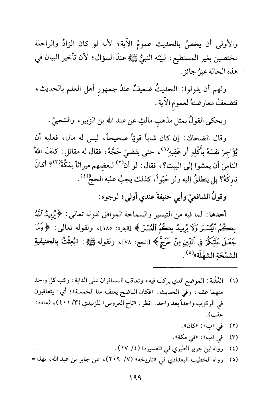 والأولى أن يخصَّ بالحديث عمومُ الآية؛ لأنه لو كان الزادُ والراحلة مختصين بغير المستطيع، لبيَّنه النبيُّ - صلى الله عليه وسلم - عندَ السؤال، لأن تأخير البيان في هذه الحالة غيرُ جائز.